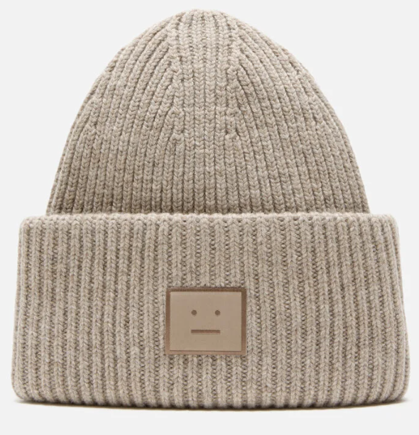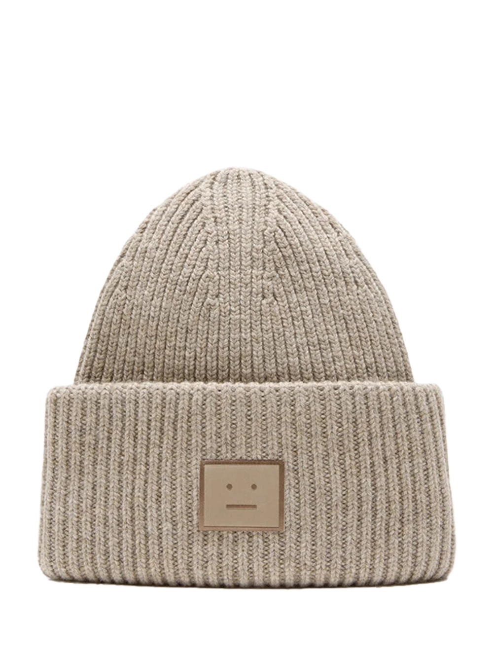 This essential Acne Studios beanie is knitted from soft, chunky ribbed wool for warmth and a modern textured look. It showcases the brand's signature large embroidered Face logo patch and a classic turned-up cuff. With a versatile one-size circumference of approximately 59 cm, this Acne Studios beanie offers a comfortable, slouchy fit.