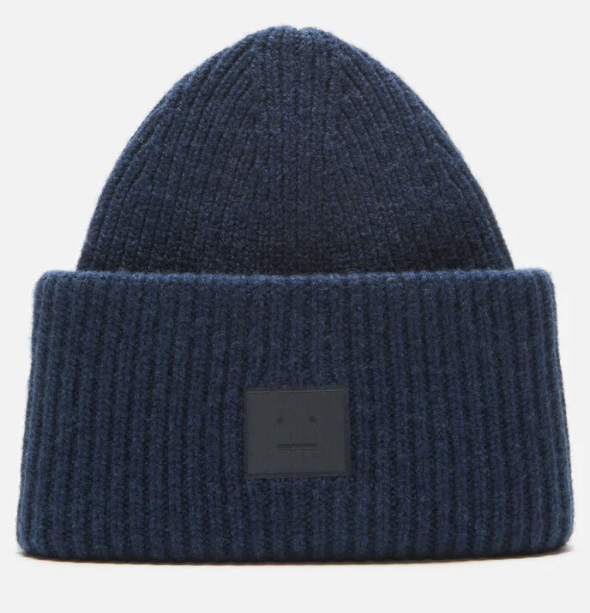 This essential Acne Studios beanie is knitted from chunky ribbed wool for cosy warmth. It features the brand's signature large embroidered Face logo patch and a classic turned-up cuff. With a one-size circumference of approximately 59 cm, this Acne Studios beanie offers a comfortable, slouchy fit.