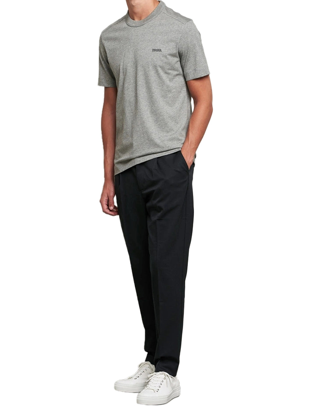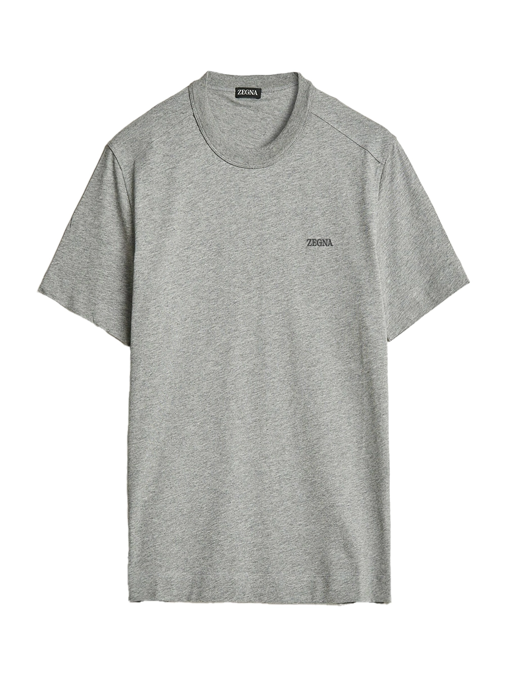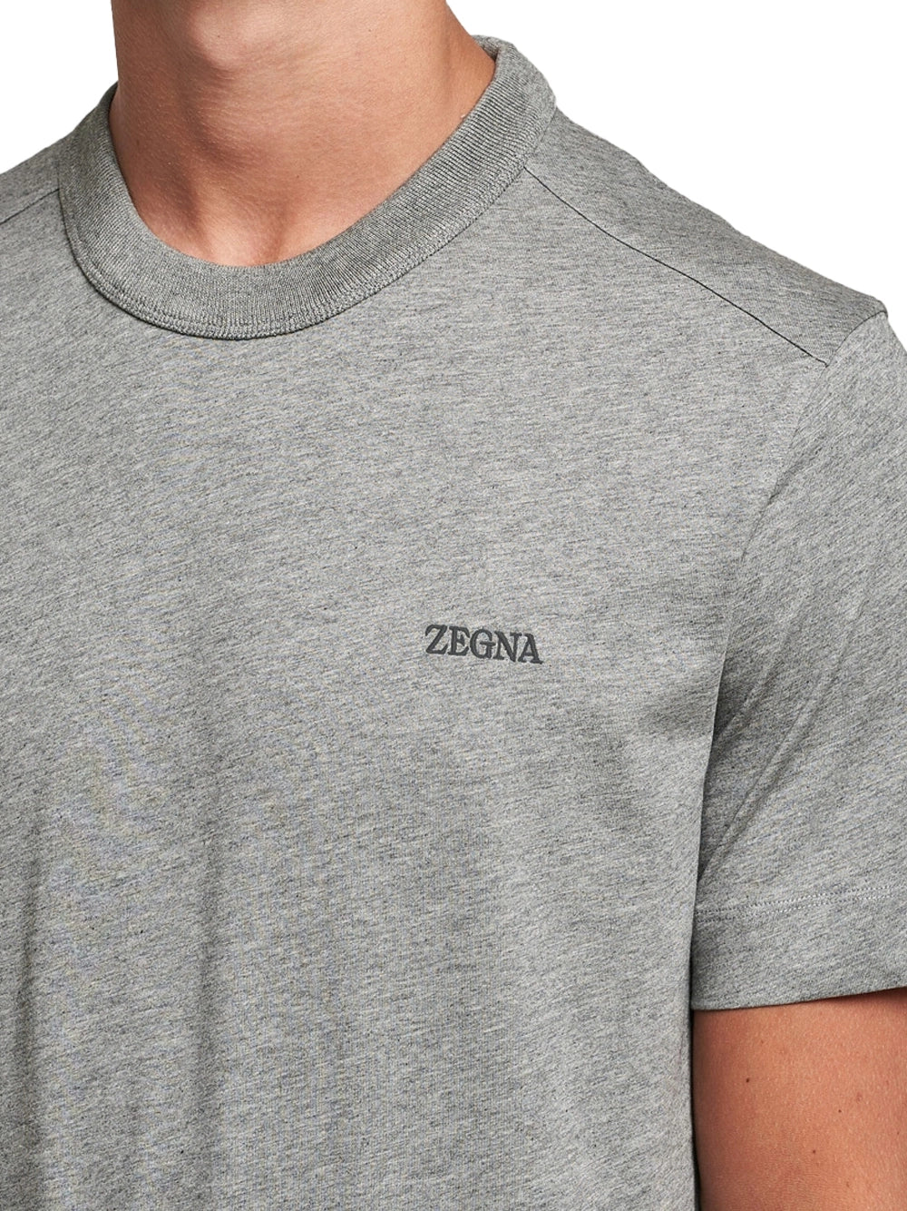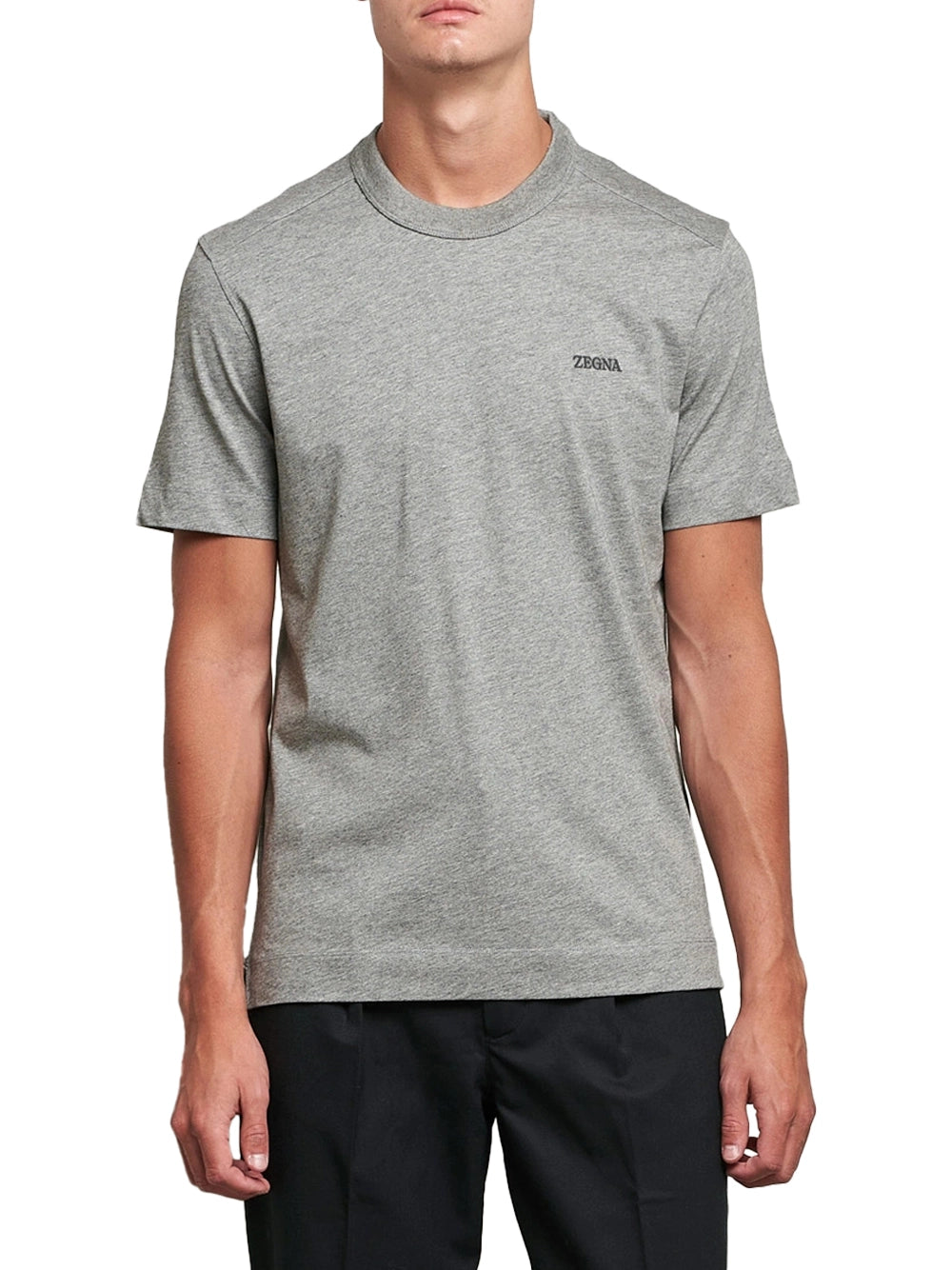 Elevate your wardrobe with the Zegna Crewneck T-Shirt in a versatile grey. It features a timeless crewneck design with short sleeves and a clean, regular fit for a sophisticated silhouette. Finished with refined folded trims at the hem and cuffs, this quality Zegna t shirt embodies understated luxury. Made in Portugal, this essential piece is a foundation of quiet, everyday elegance and a cornerstone of any curated Zegna t shirts collection.