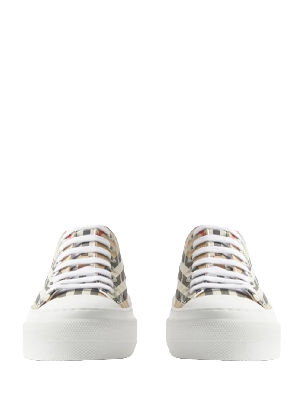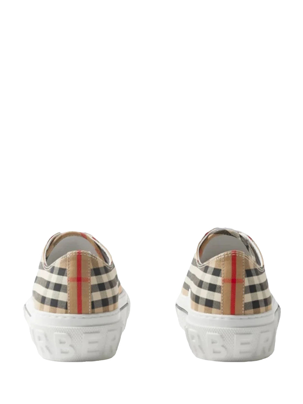 The Burberry Check Sneakers Archive Beige represent a fusion of heritage design and modern sustainability. Crafted from organic cotton and featuring the iconic check pattern, these low-top sneakers blend classic British aesthetics with urban practicality, making them ideal for navigating London's bustling streets or weekend escapes to the countryside.