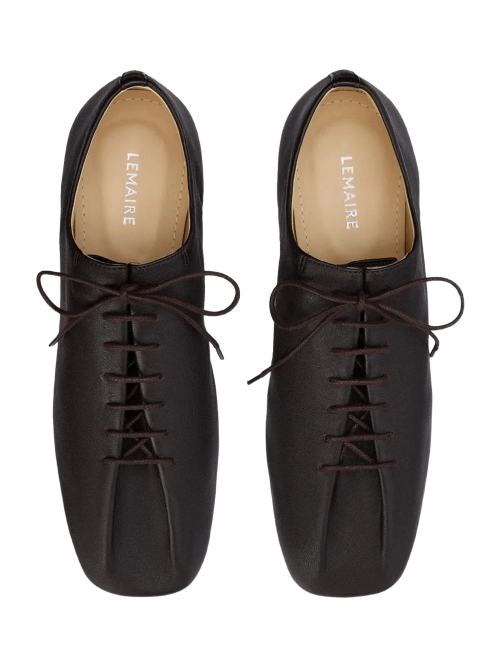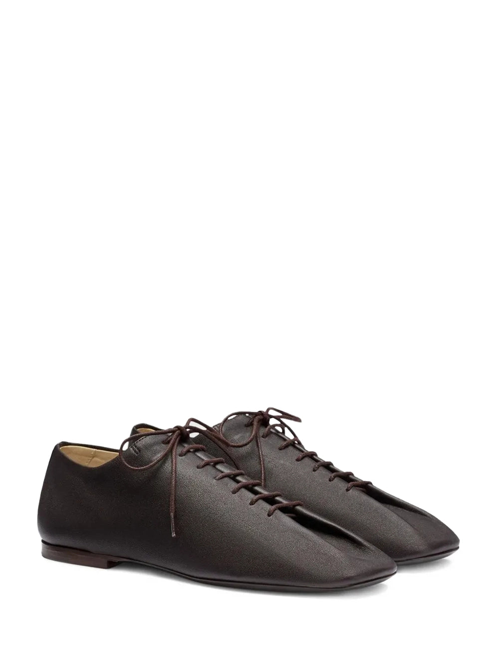 Enhance your lemaire shoes collection with these Souris Derbies in Dark Chocolate. Crafted from washed nappa lambskin, this lemaire derby features an extended square toe and waxed cotton laces. These lemaire footwear essentials offer a premium lace-up closure and durable leather outsole. This signature lemaire style provides a sophisticated, versatile look for the modern British wardrobe.
