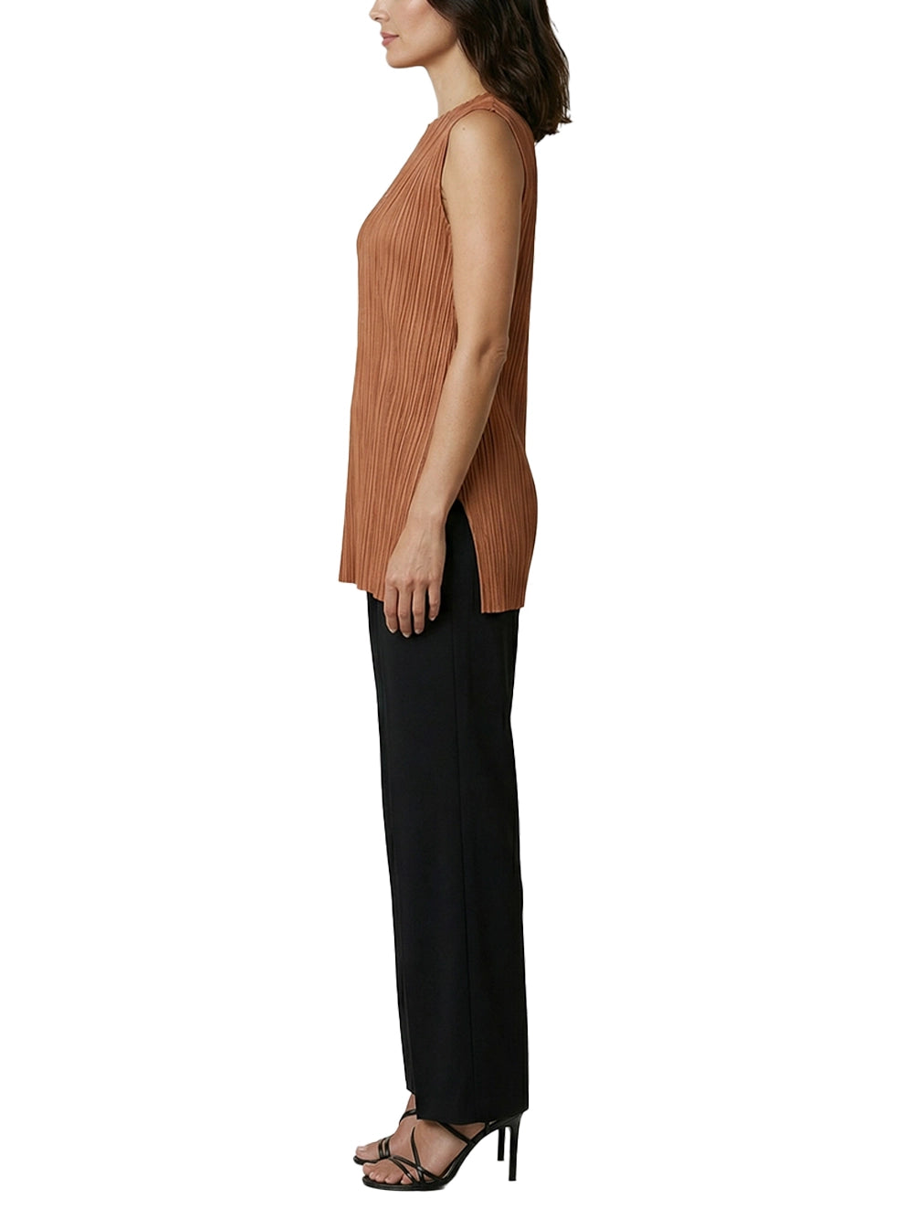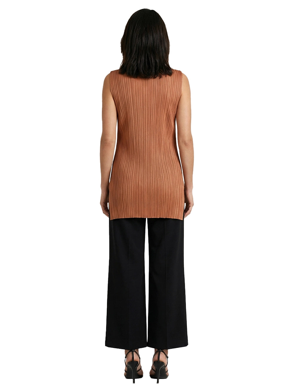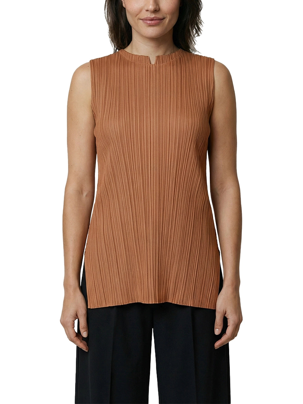 Master tonal dressing with issey miyake and this sleeveless issey miyake top. This issey miyake top brown features a pleated waist and A-line cut. Among issey miyake tops, this issey miyake top offers a notched back neck. Issey Miyake top brown provides side slits, making issey miyake tops an essential issey miyake choice for elevated daily wear.
