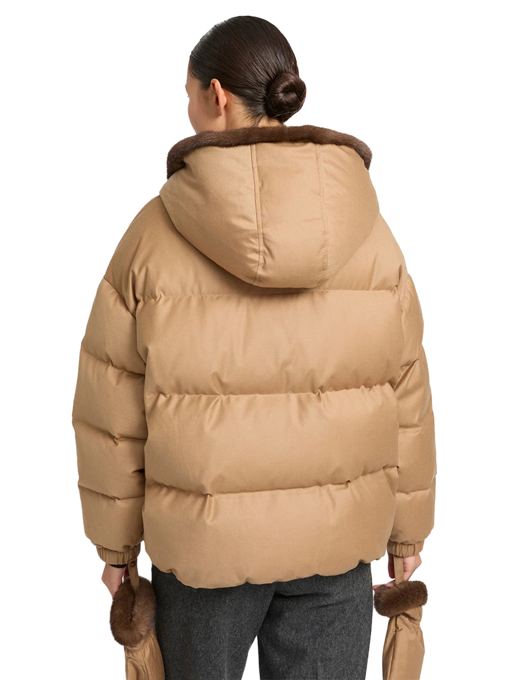 Yves Salomon Short hooded down jacket Macadamia-back side Yves Salomon Short hooded down jacket Macadamia-back side