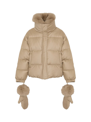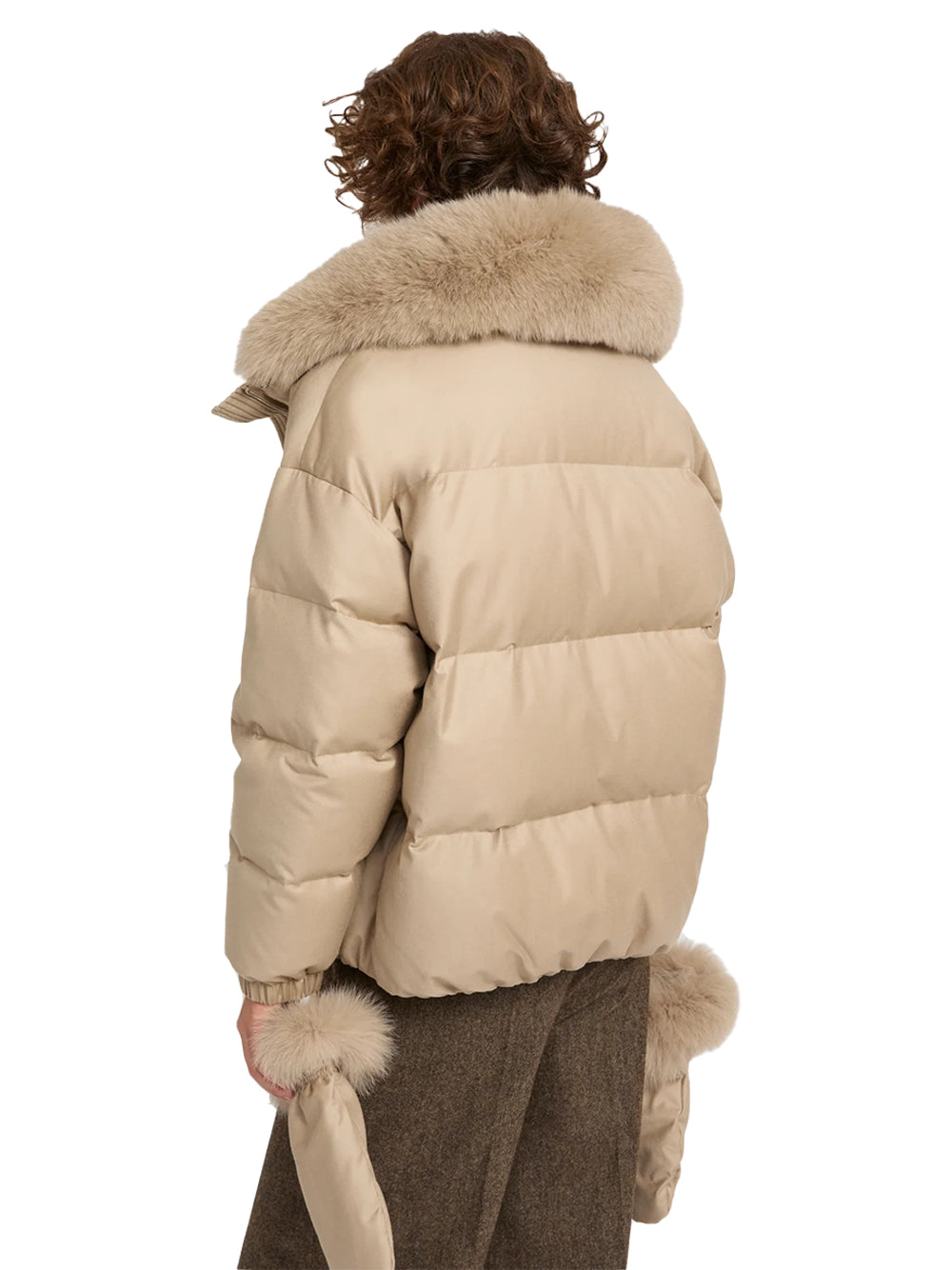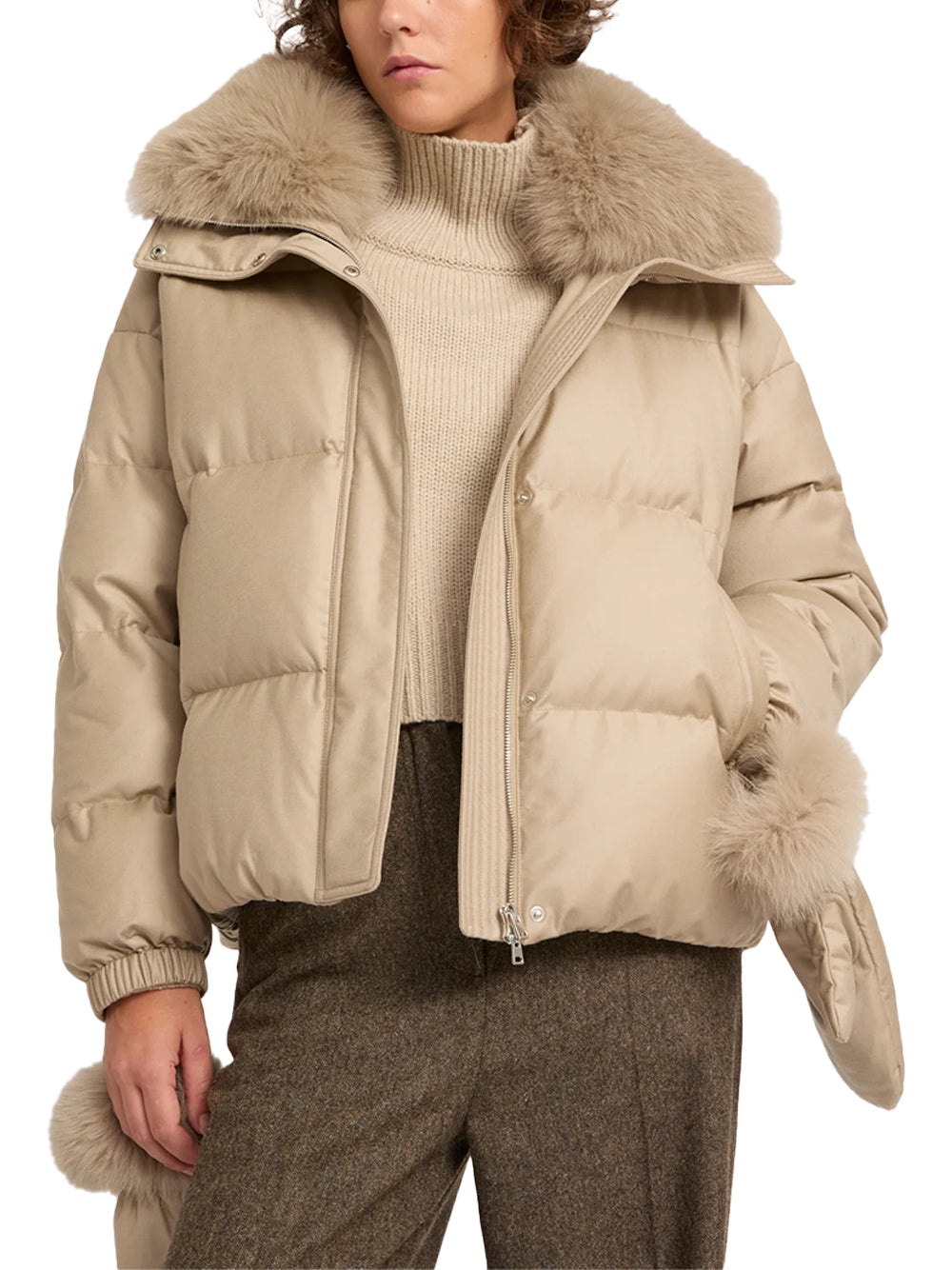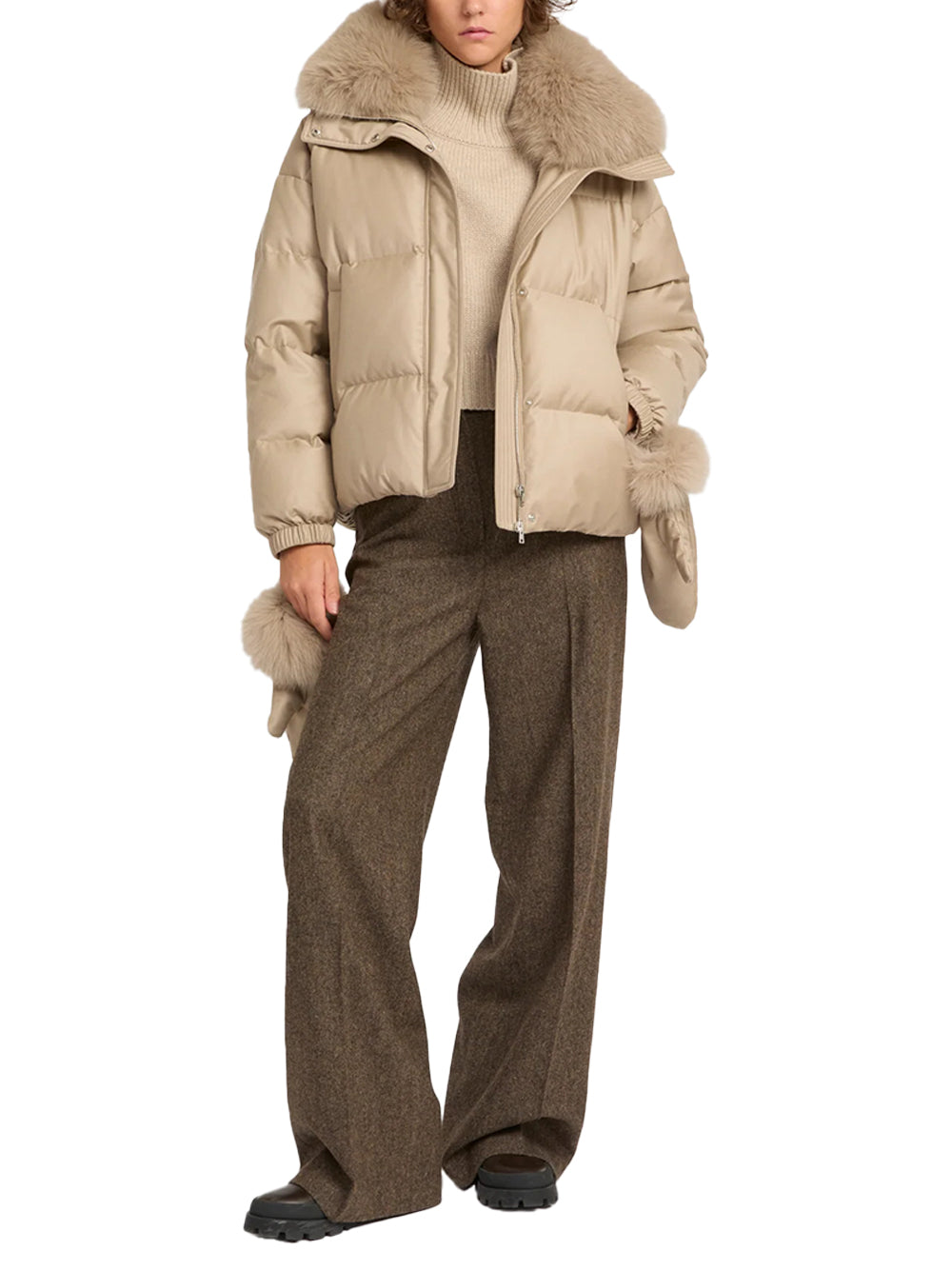 Yves Salomon Short Loro Piana fabric down jacket Dune