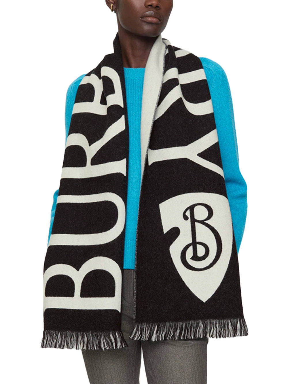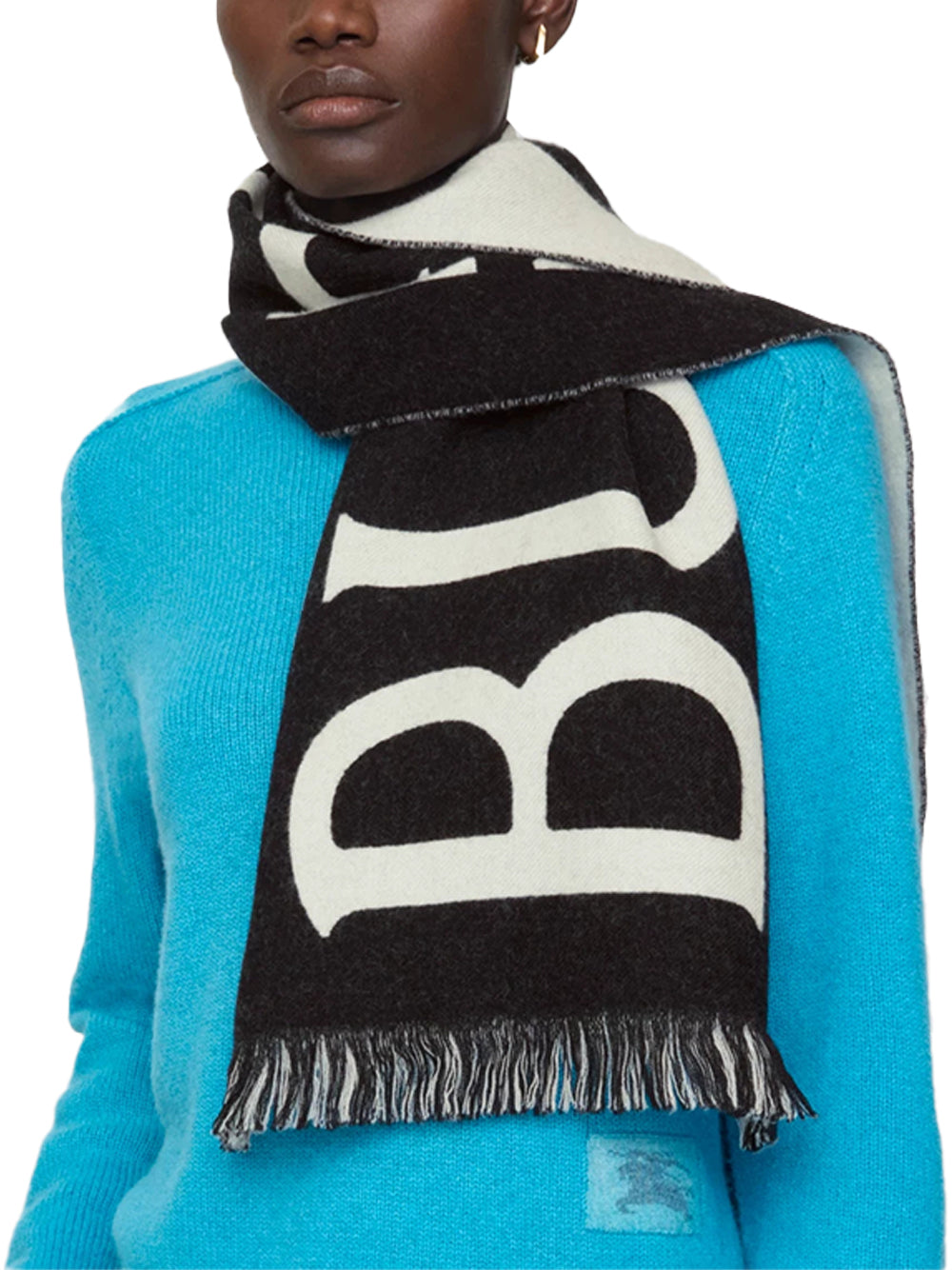 Wrap yourself in signature sophistication with the Burberry Logo Jacquard Scarf in Black and Calico. Expertly crafted from 100% premium wool, this scarf features a reversible jacquard design with the Burberry logo on both sides, offering two stylish ways to wear. Insulated with double-sided wool, this versatile piece will add a sophisticated yet contemporary edge to your winter wardrobe.
