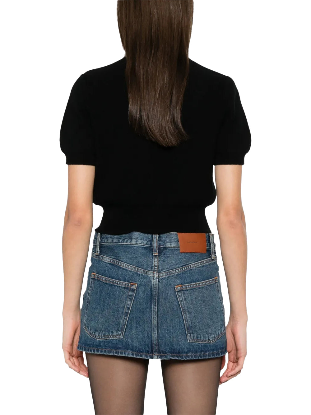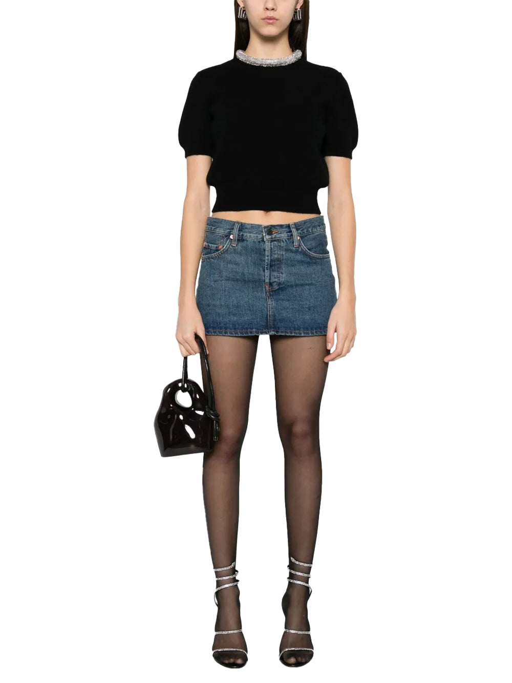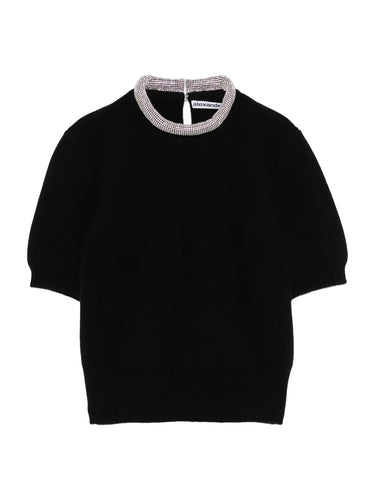 Alexander Wang Short Sleeves Crystal Tubular Necklace T-Shirt Black