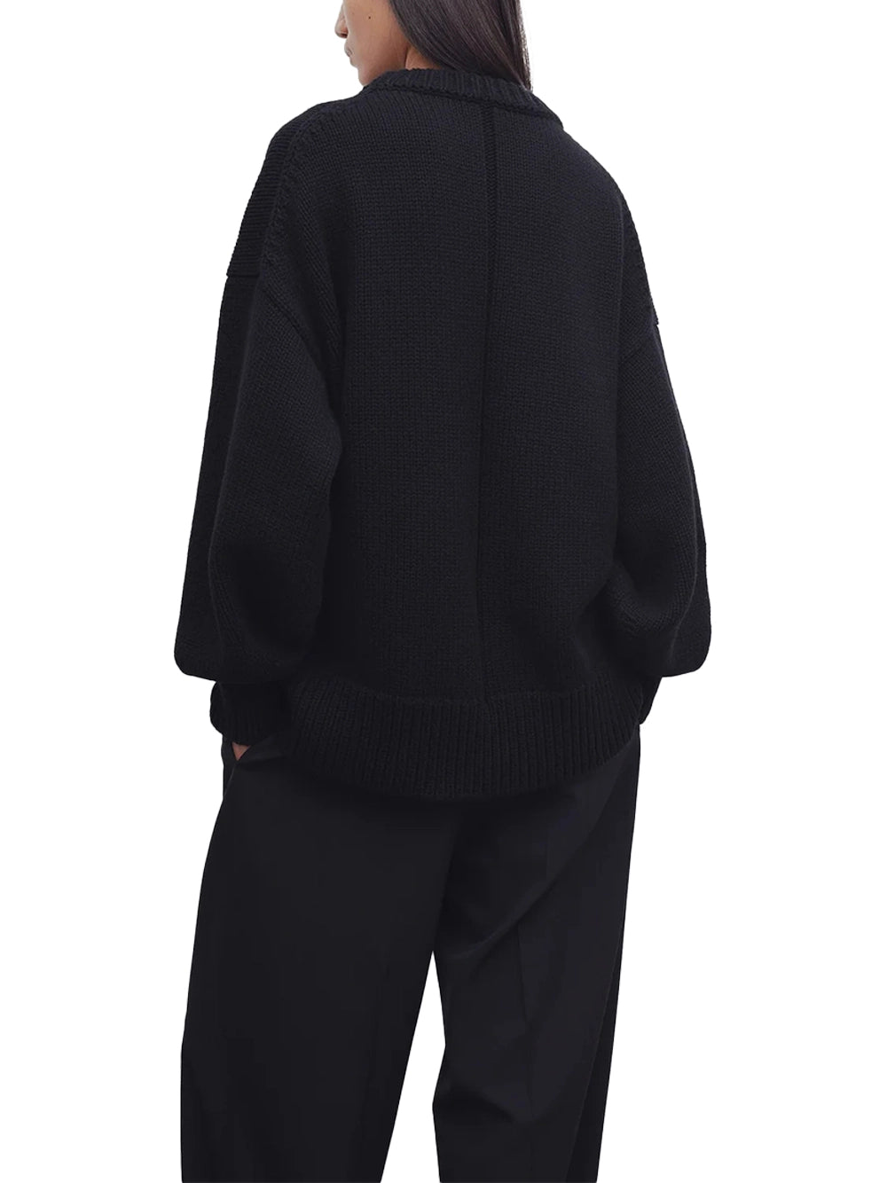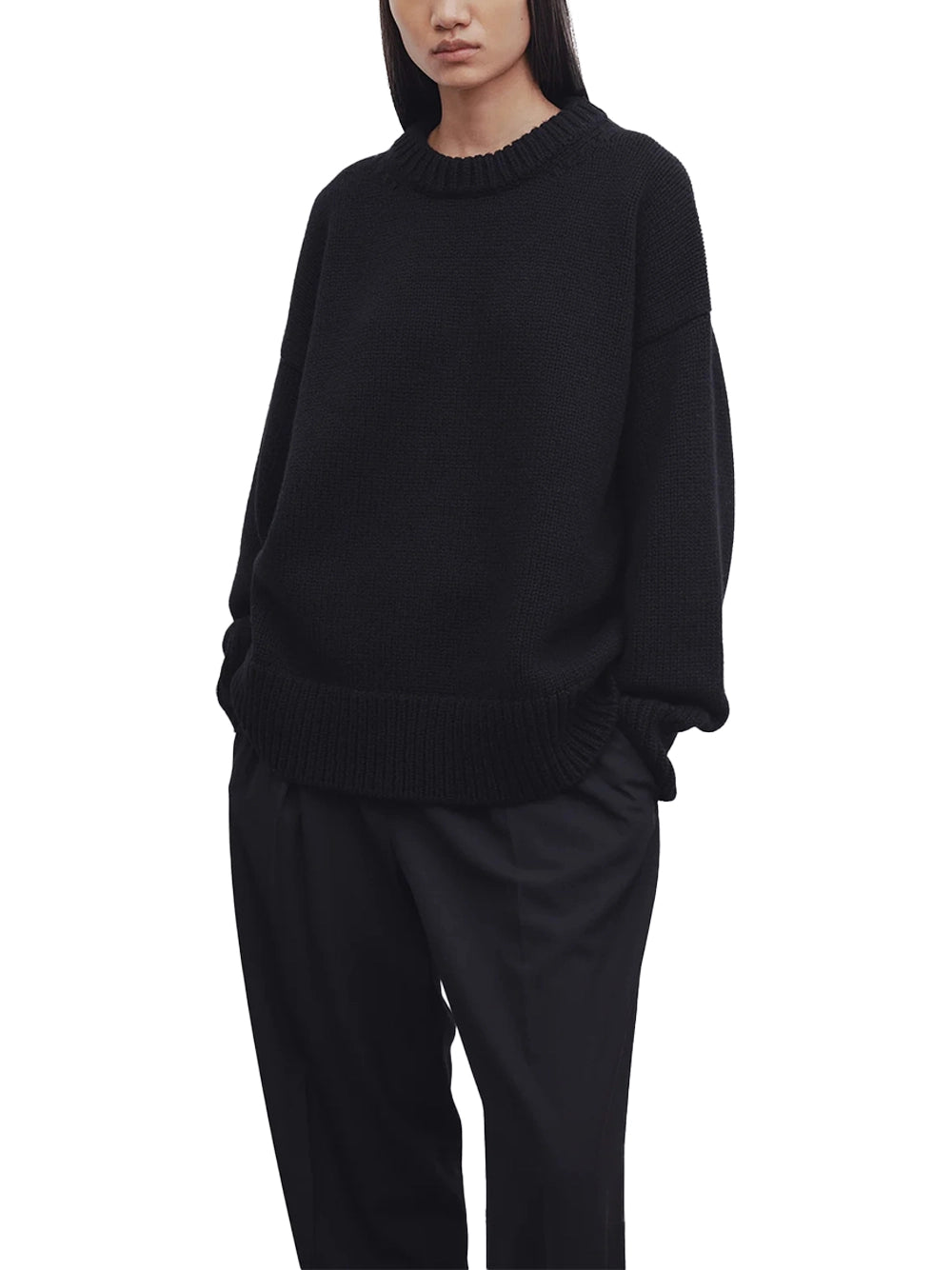 The Row Ophelia Sweater in Black is a timeless knitwear staple, crafted from a luxurious wool blend for a soft, cozy feel. With its relaxed fit, dropped shoulders, and classic crew neckline, it offers effortless sophistication and versatility for everyday wear.