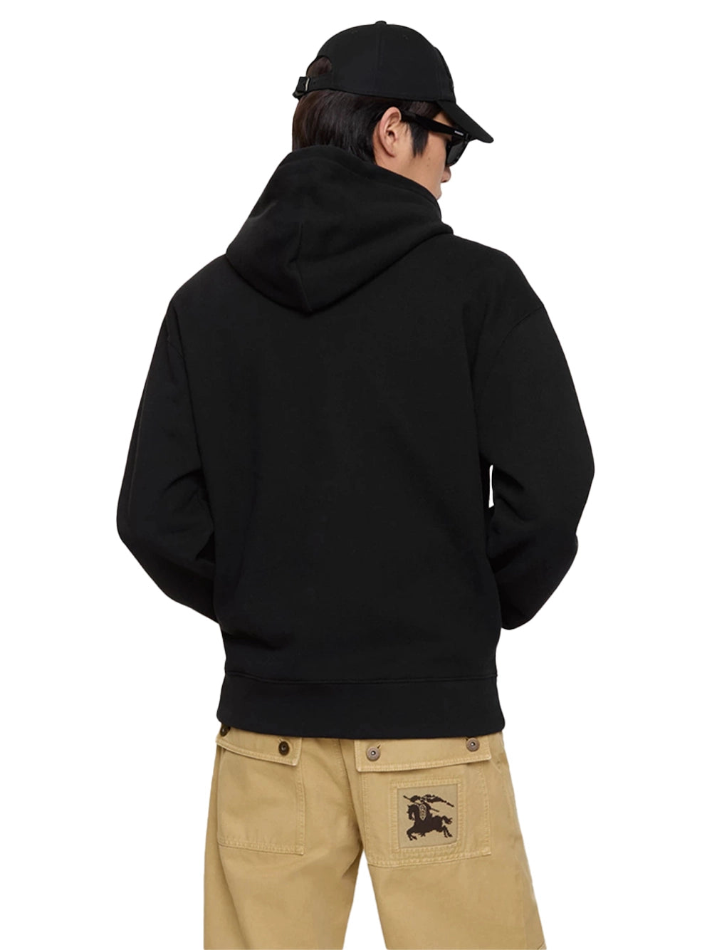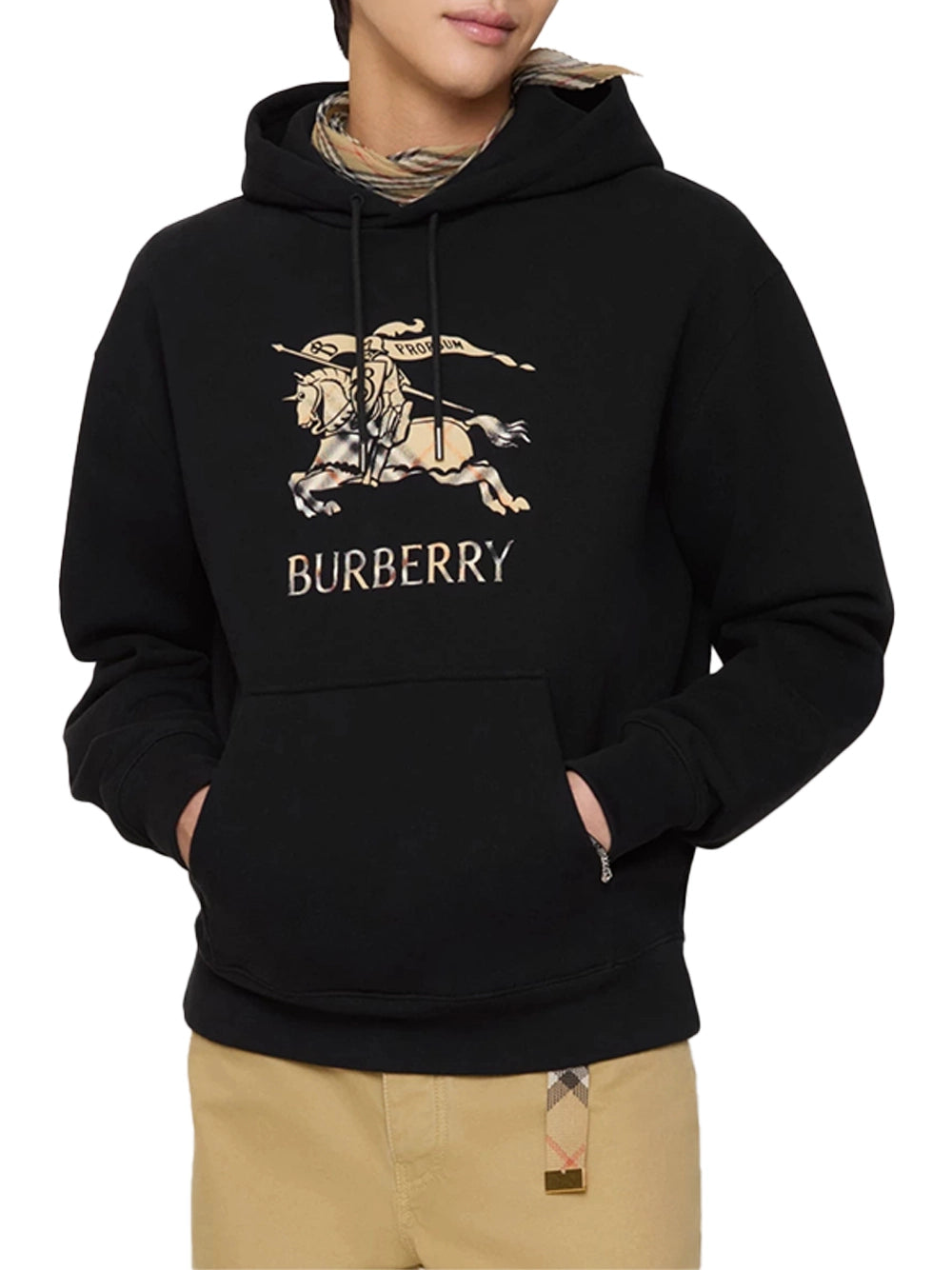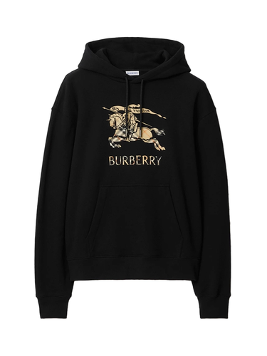 This slim-fit Burberry hoodie for men is crafted from soft cotton terry fabric, offering everyday comfort with a modern silhouette. The design features a classic hood, a practical front pocket, and durable ribbed cuffs and hem. It is distinguished by the signature Equestrian Knight Device (EKD) motif on the front, which incorporates a subtle, gradient Burberry check pattern within the design.