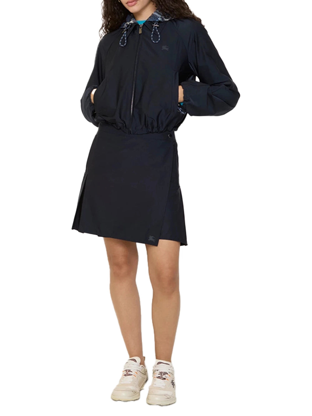 This elegant Burberry skirt is crafted from lightweight, waterproof stretch-nylon for a sleek silhouette. It features a mid-rise, wrap-style design with a snap-fastening closure and practical side zip pockets. The design is subtly adorned with tonal Equestrian Knight Device (EKD) prints, while the waistband is lined with the iconic Burberry check.