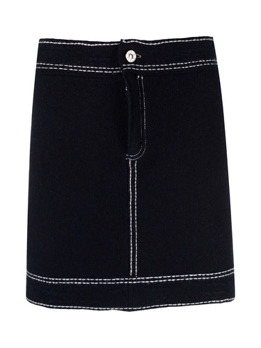 Step out bold in this BARRIE contrast-stitching denim mini skirt. The skirt BARRIE design fuses a cotton-cashmere blend knit with stretch, showcasing contrast stitching detail throughout. A womens BARRIE skirt above-knee length with knee-grazing finish, the BARRIE skirt fitted silhouette brings knit structure with comfort for everyday wear.