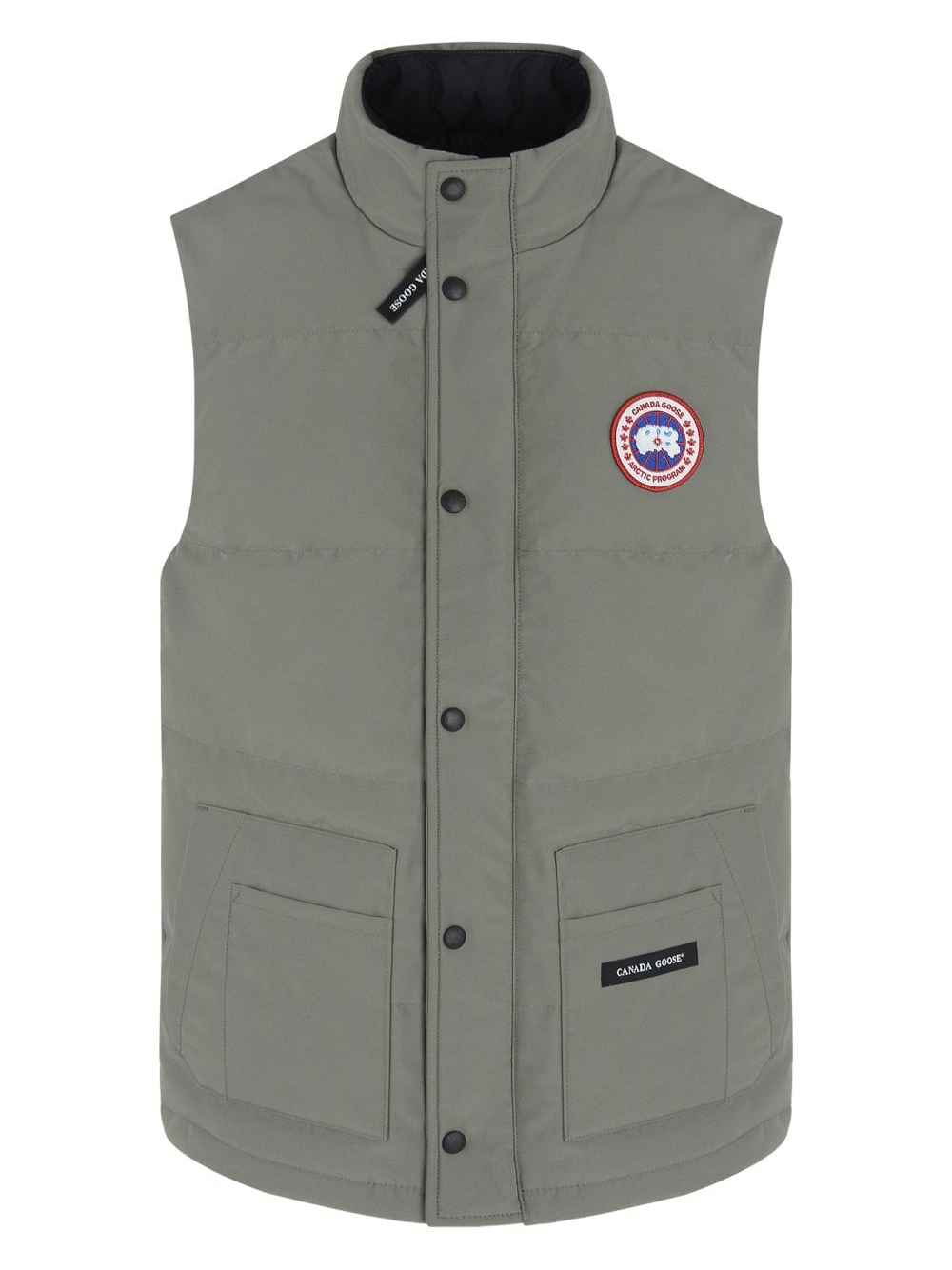 Introducing the Canada Goose Freestyle Vest in Sage Brush—a sleek canada goose vest mens layer with quilted down design, signature logo patch, and modern silhouette. The canada goose mens vest features a full zip front with storm flap, two side pockets, and smooth interior. Perfect canada goose freestyle vest for lightweight warmth and style.