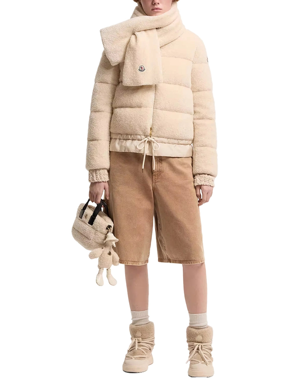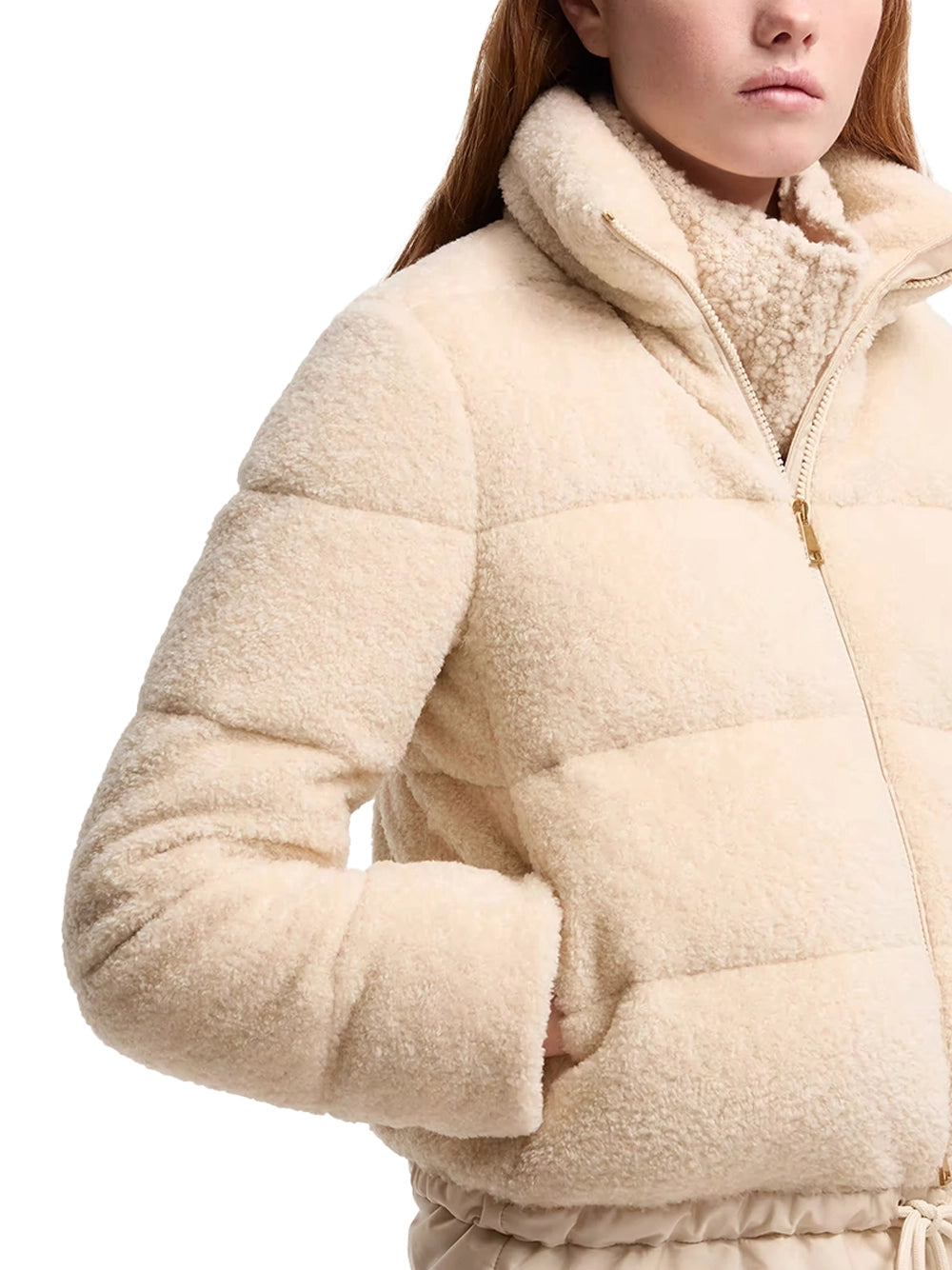 Moncler Women Cedar Teddy Jacket Ivory-Fabric details Moncler Women Cedar Teddy Jacket Ivory-Fabric details