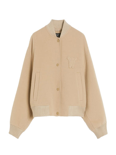 Crafted from luxurious double-faced wool blend, this Weekend Maxmara Zelante jacket in classic camel offers a relaxed, slightly oversized fit. The versatile Weekend Max Mara clothing design features a ribbed knit collar, dropped shoulders, and long sleeves with branded snap fastening. Practical slanted front pockets and an unlined construction ensure lightweight comfort.