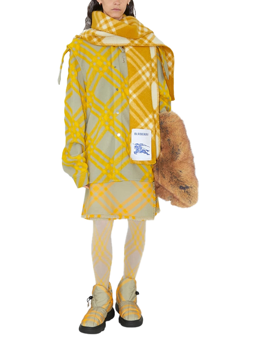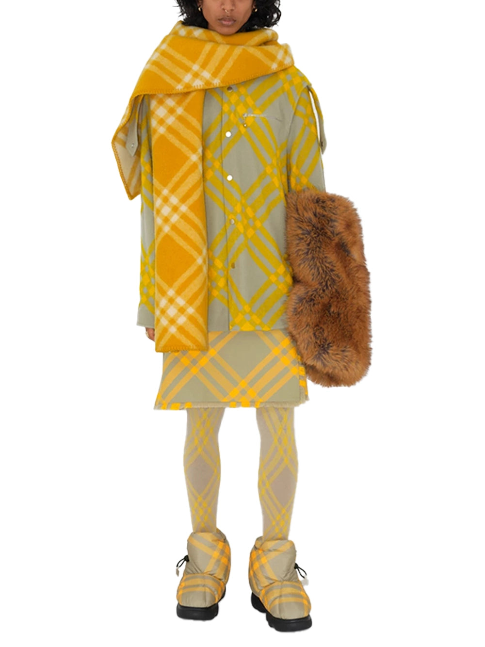 Burberry Check Wool Hooded Scarf Yellow-with model