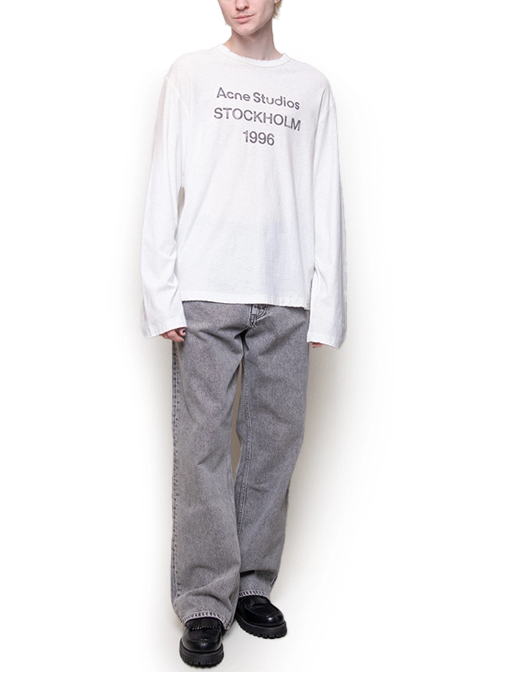 Acne Studios 1996 Long Sleeve T-Shirt Off White-with model Acne Studios 1996 Long Sleeve T-Shirt Off White-with model