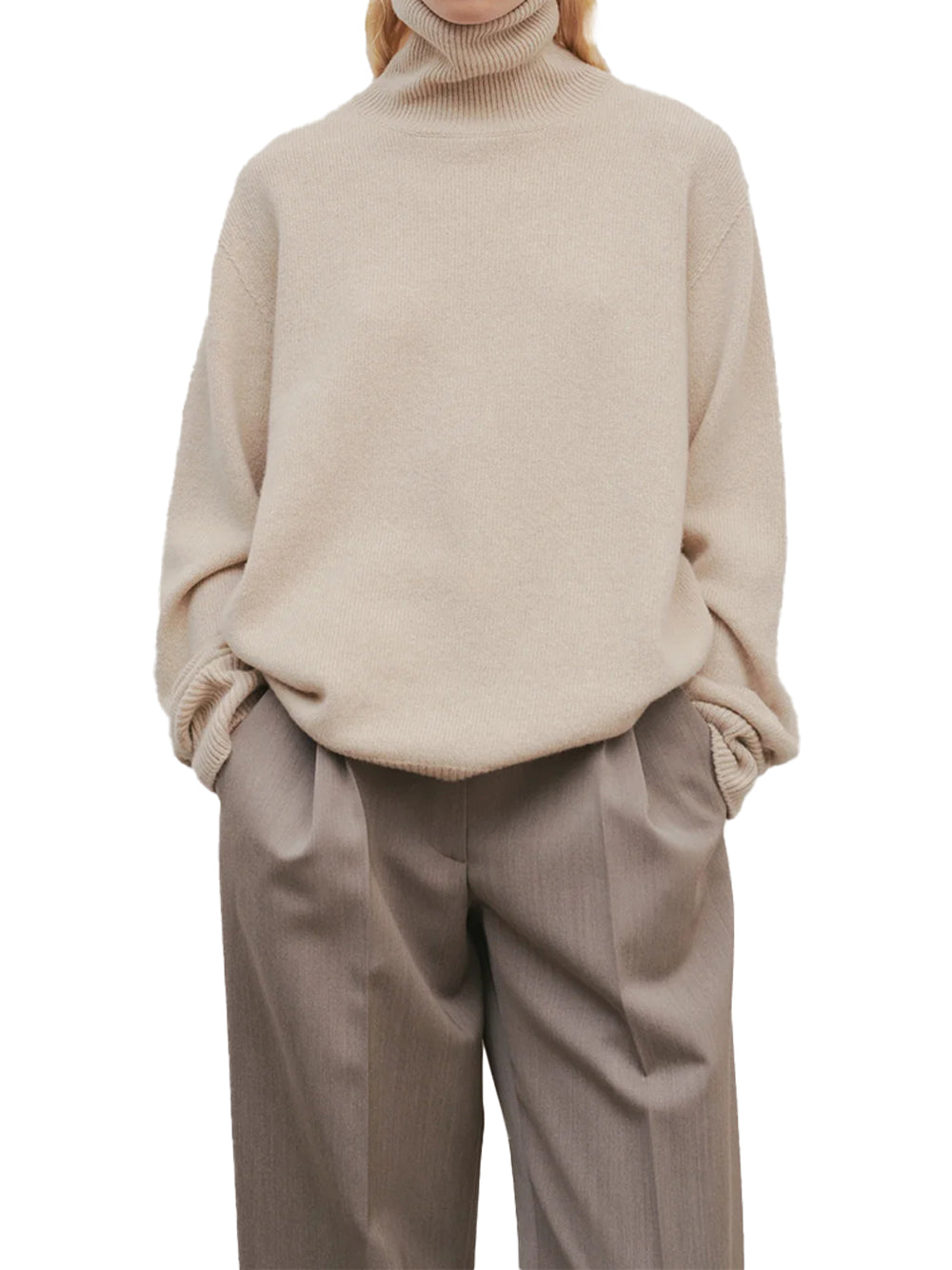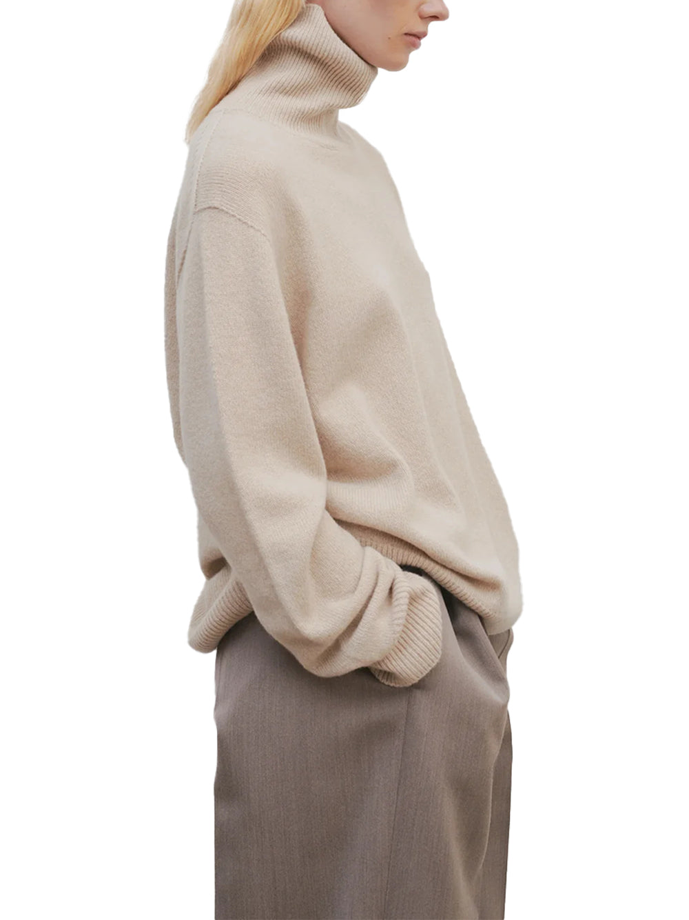 Experience understated luxury with The Row Stepny top in elegant sand. This premium The Row sweater combines cashmere and wool for exceptional softness and warmth. The design features a refined turtleneck with ribbed detailing at the cuffs and hem, embodying the minimalist power of The Row London aesthetic. Perfect for the discerning individual, this piece is an investment in timeless style.