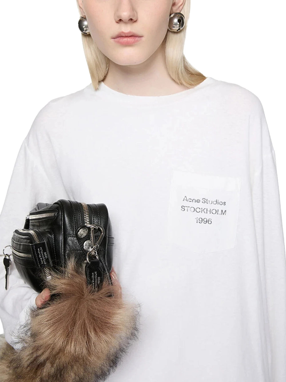 Acne Studios 1996 Logo Pocket T-Shirt Off white-with model Acne Studios 1996 Logo Pocket T-Shirt Off white-with model