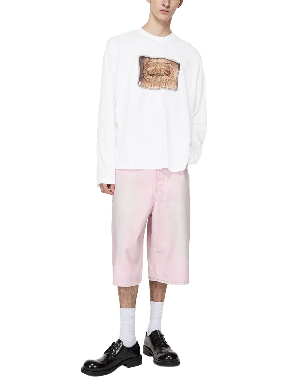 Discover contemporary style with Acne Studios print long-sleeve t-shirt in crisp white. This versatile Acne Studios t shirt features a relaxed unisex fit with hip-length cut and classic crewneck. The seasonal digital print adds artistic flair to this essential Acne Studios tshirt, perfect for layering or standalone wear.