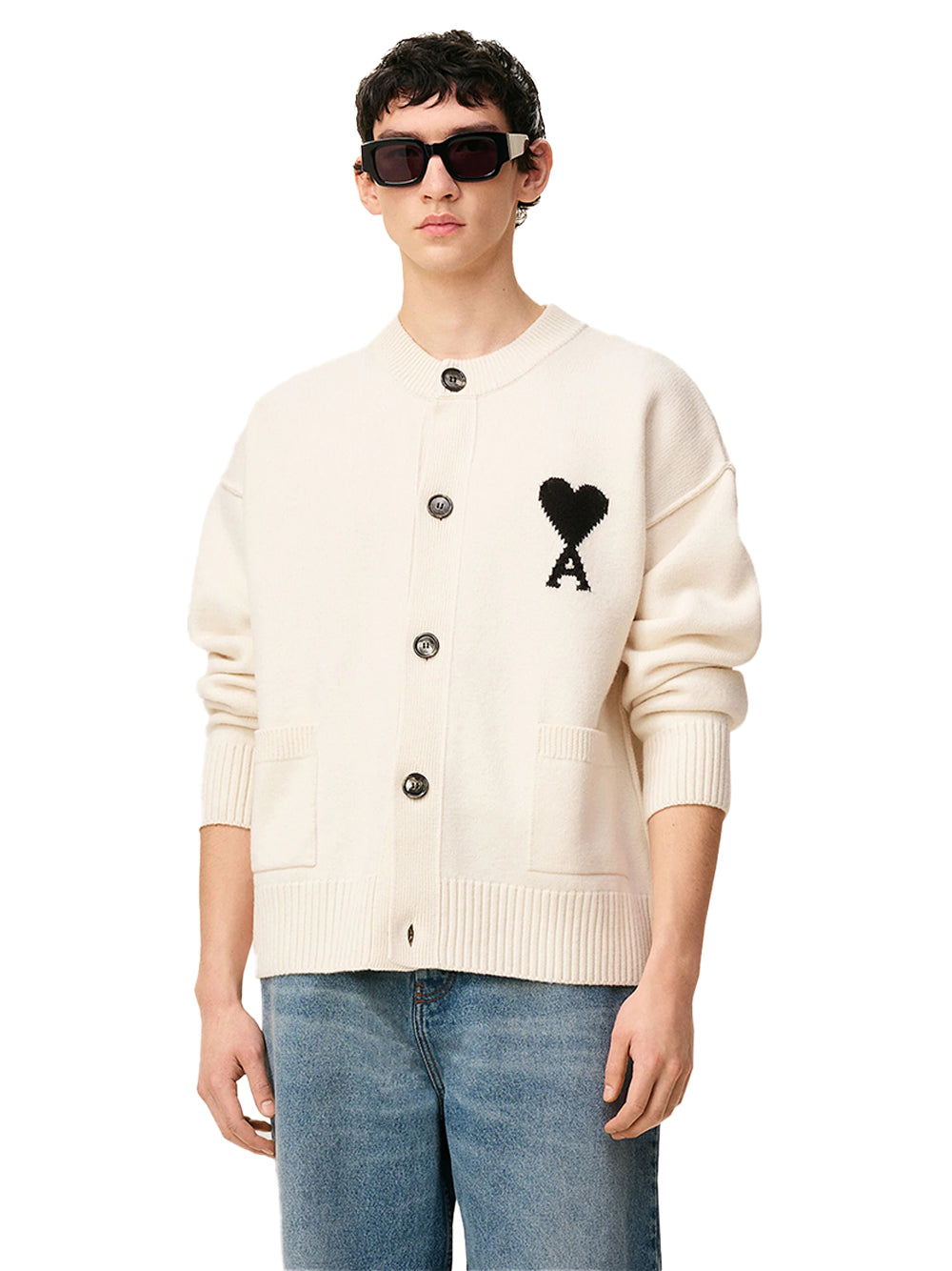 Ami Paris ADC cardigan White-with men model Ami Paris ADC cardigan White-with men model