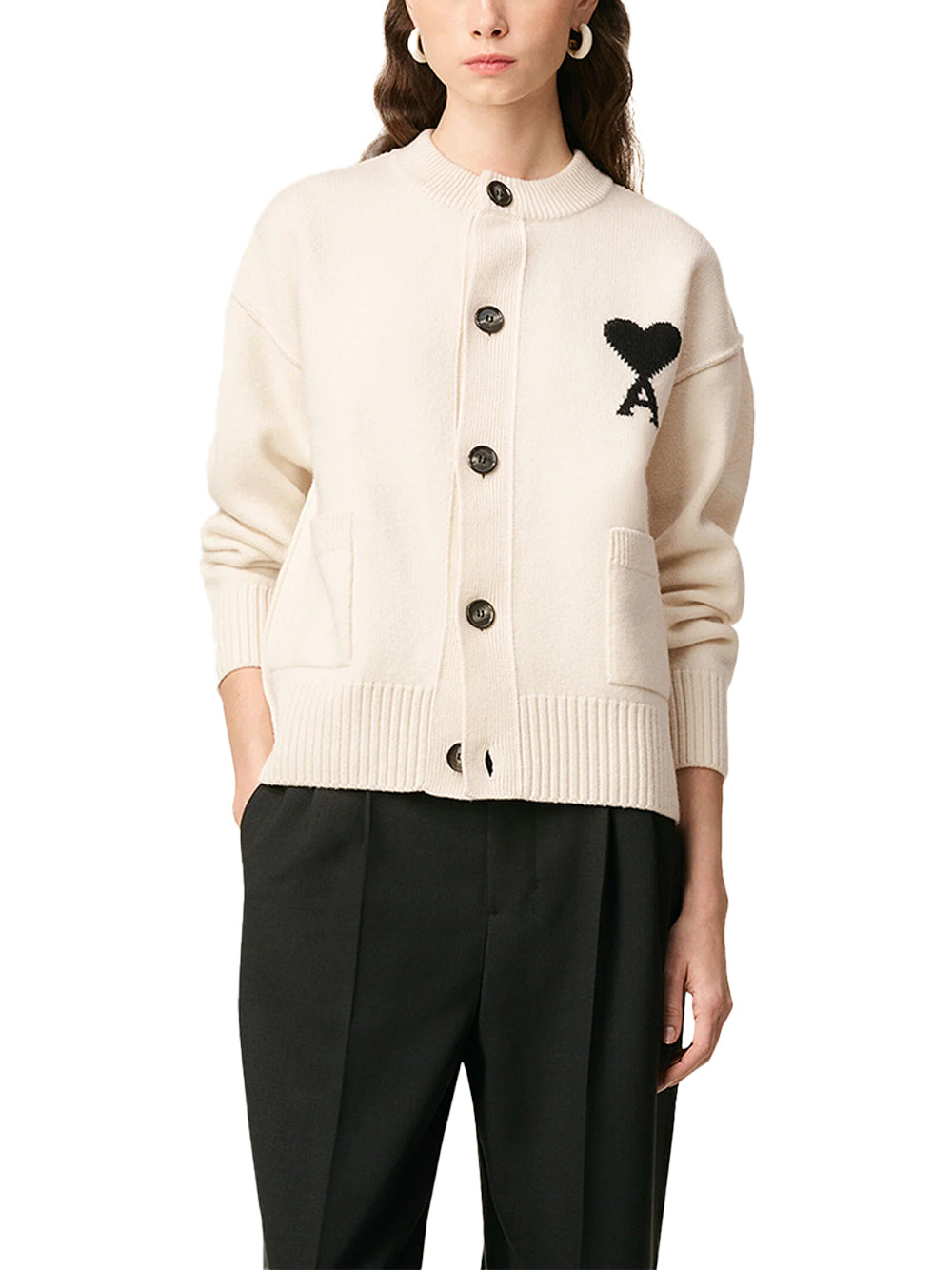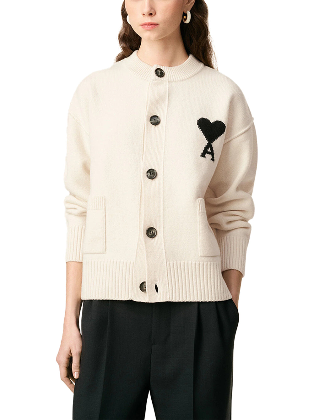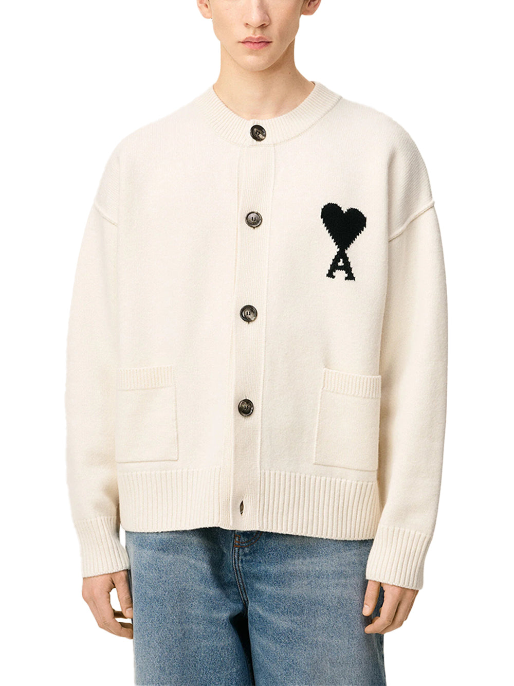 Ami Paris ADC cardigan White-front detial Ami Paris ADC cardigan White-front detial