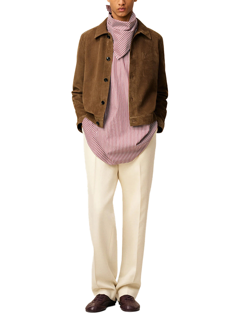Ami Paris leather jacket Hazelnut-front detial