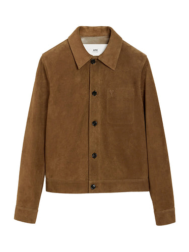 Discover sophisticated craftsmanship with this Ami Paris leather jacket in warm hazelnut. Featuring "ami" engraved horn buttons and an embossed Ami de Coeur logo on the chest pocket, this elegant Ami Paris leather jacket offers a 64cm back length with unlined construction for versatile wear. Made in Turkey with premium materials, this Ami Paris jacket represents exceptional value in the current Ami Paris sale.