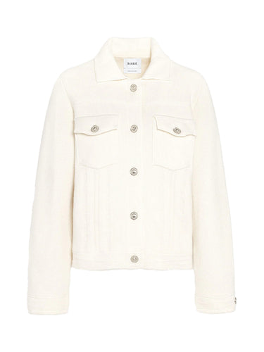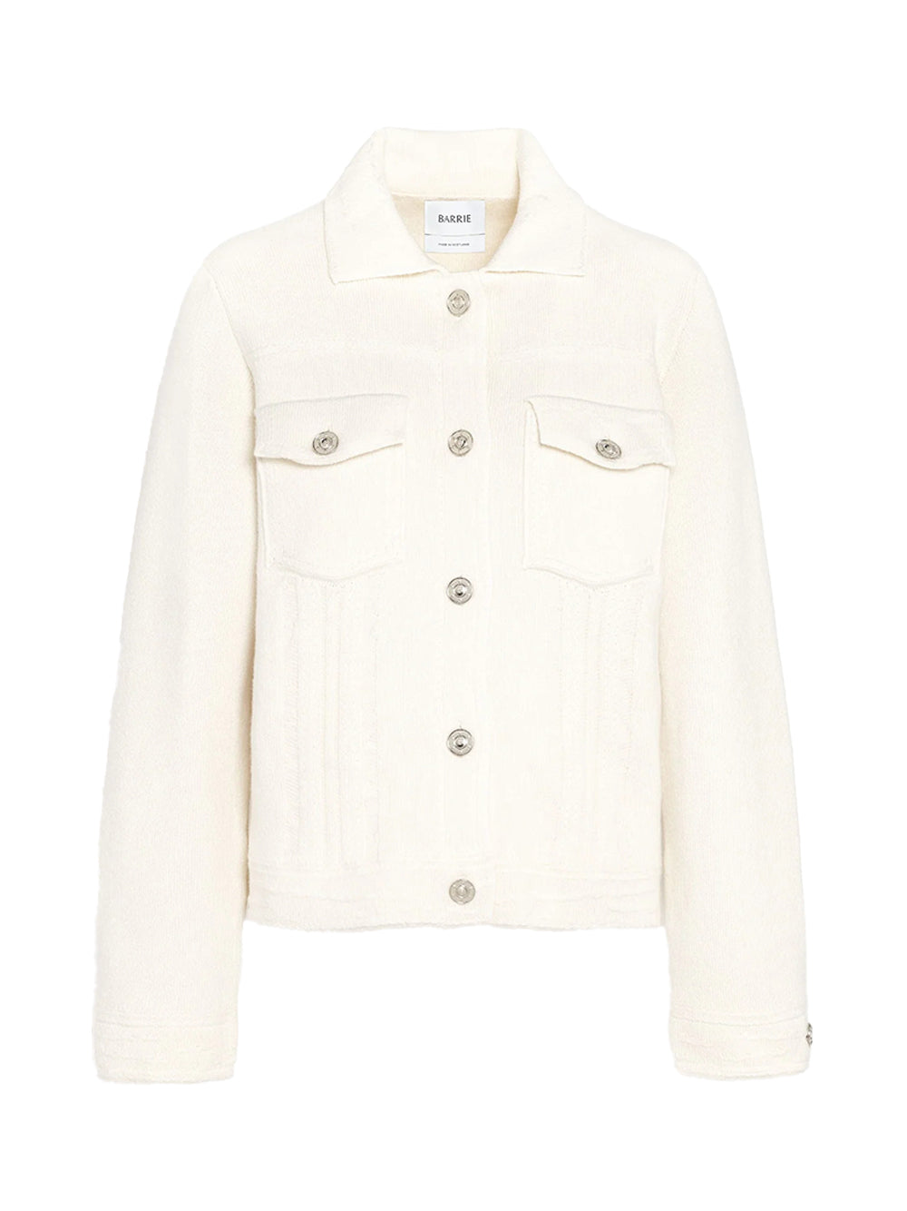Discover the exclusive capsule collection with Barrie denim cashmere cotton jacket in elegant niveous. This sophisticated Barrie jacket showcases a slim-fit cut with refined topstitch seams and signature Barrie branded metal buttons. The innovative blend creates a unique Barrie denim piece combining casual elegance with luxury craftsmanship. Perfect for London's sophisticated wardrobe, this versatile Barrie coat alternative transitions seamlessly from city refinement to countryside relaxation.