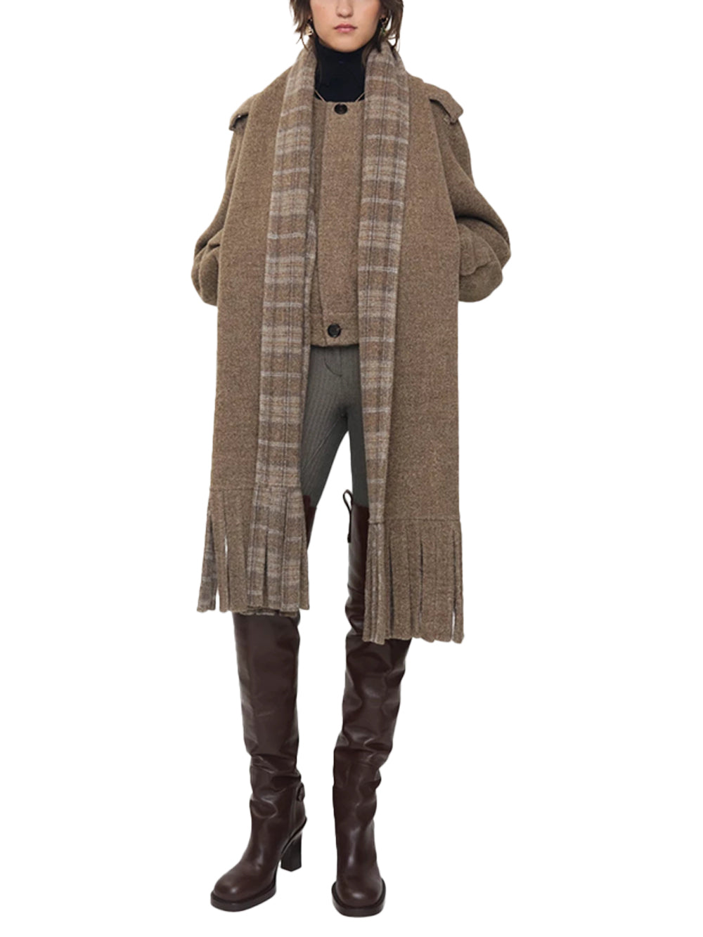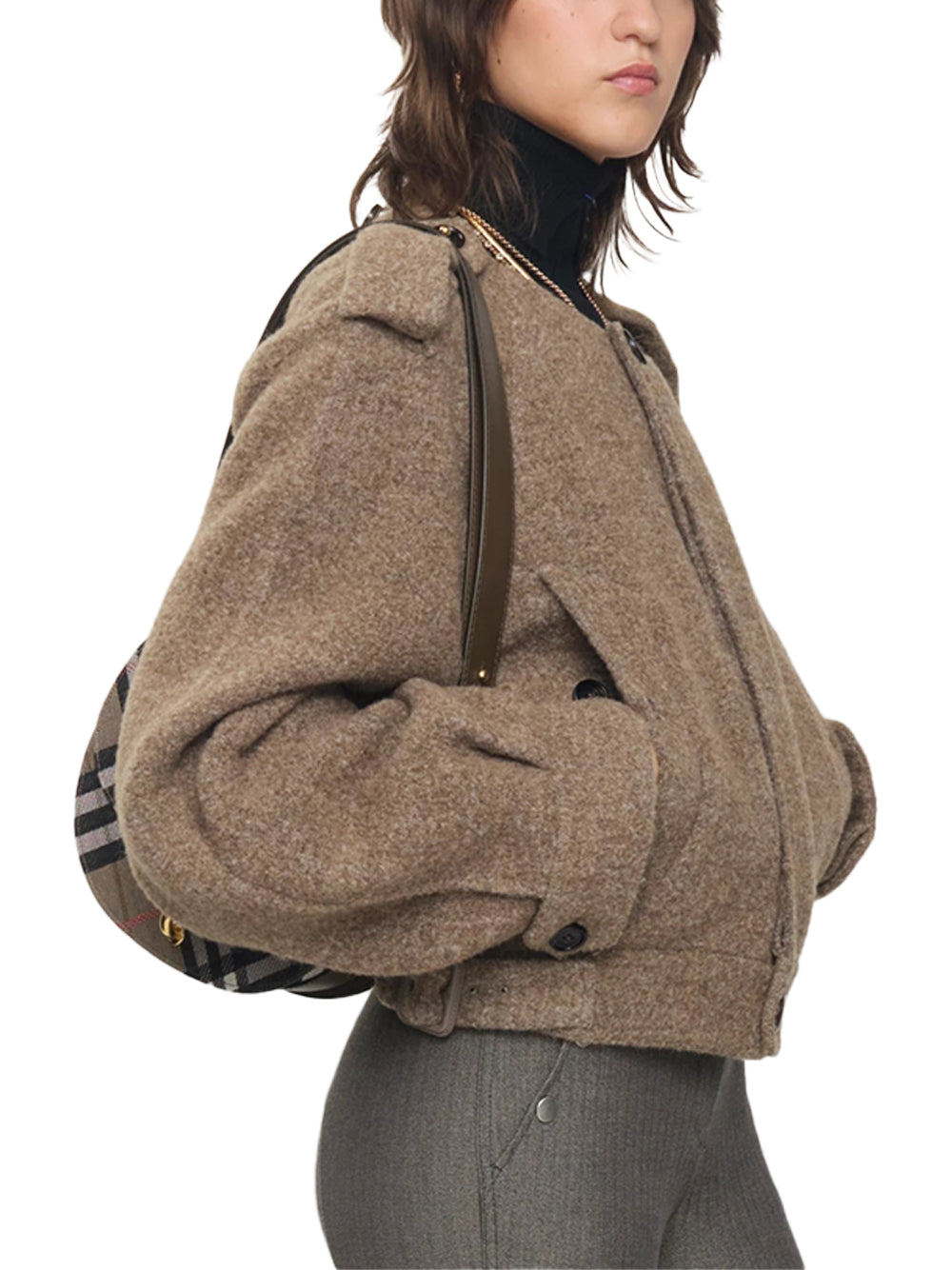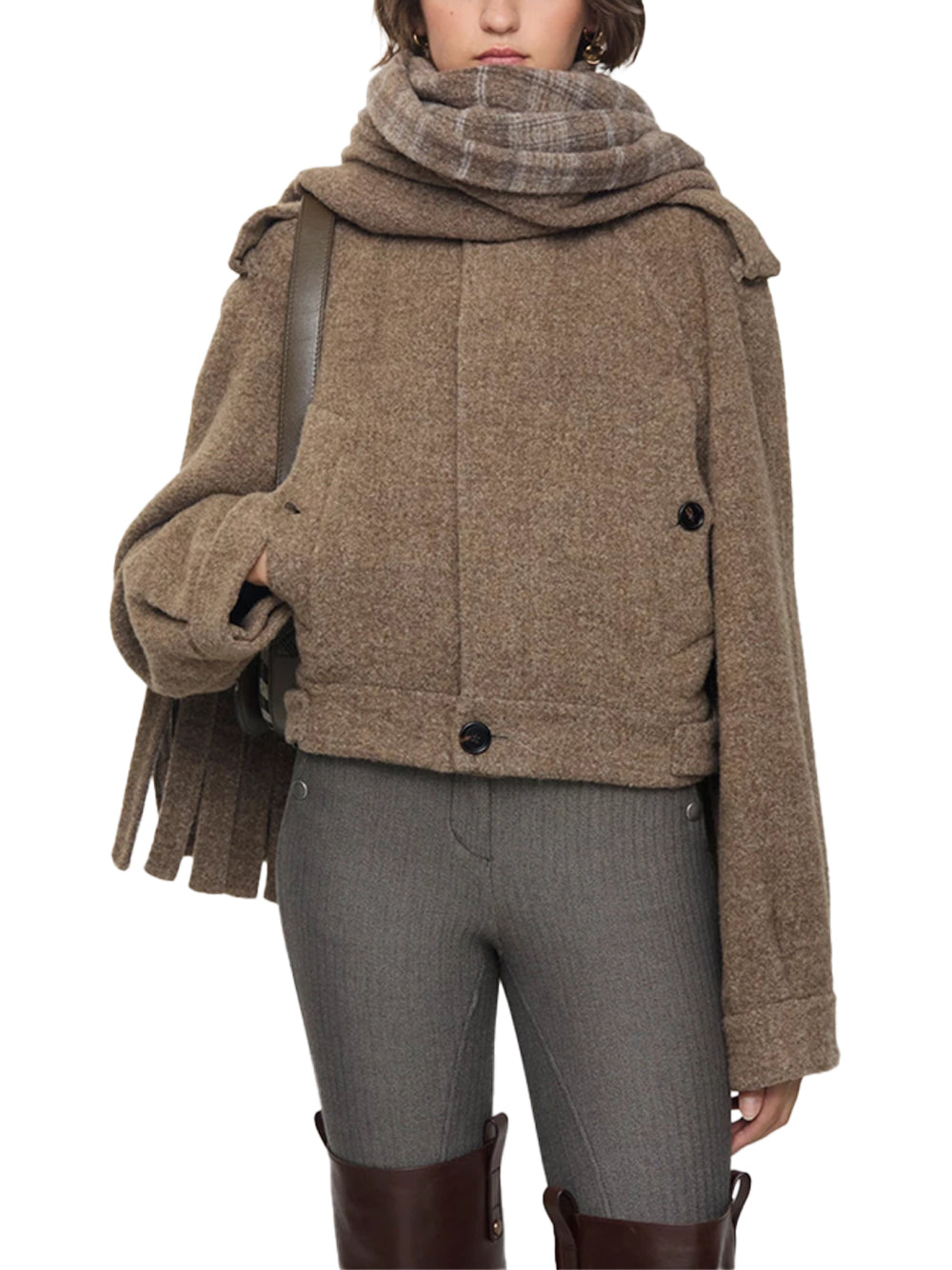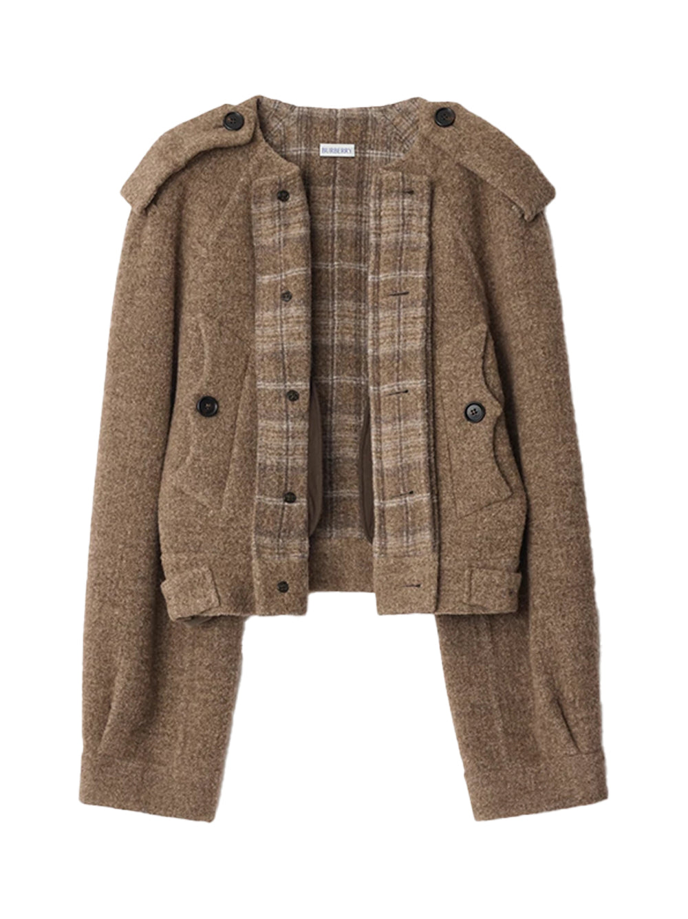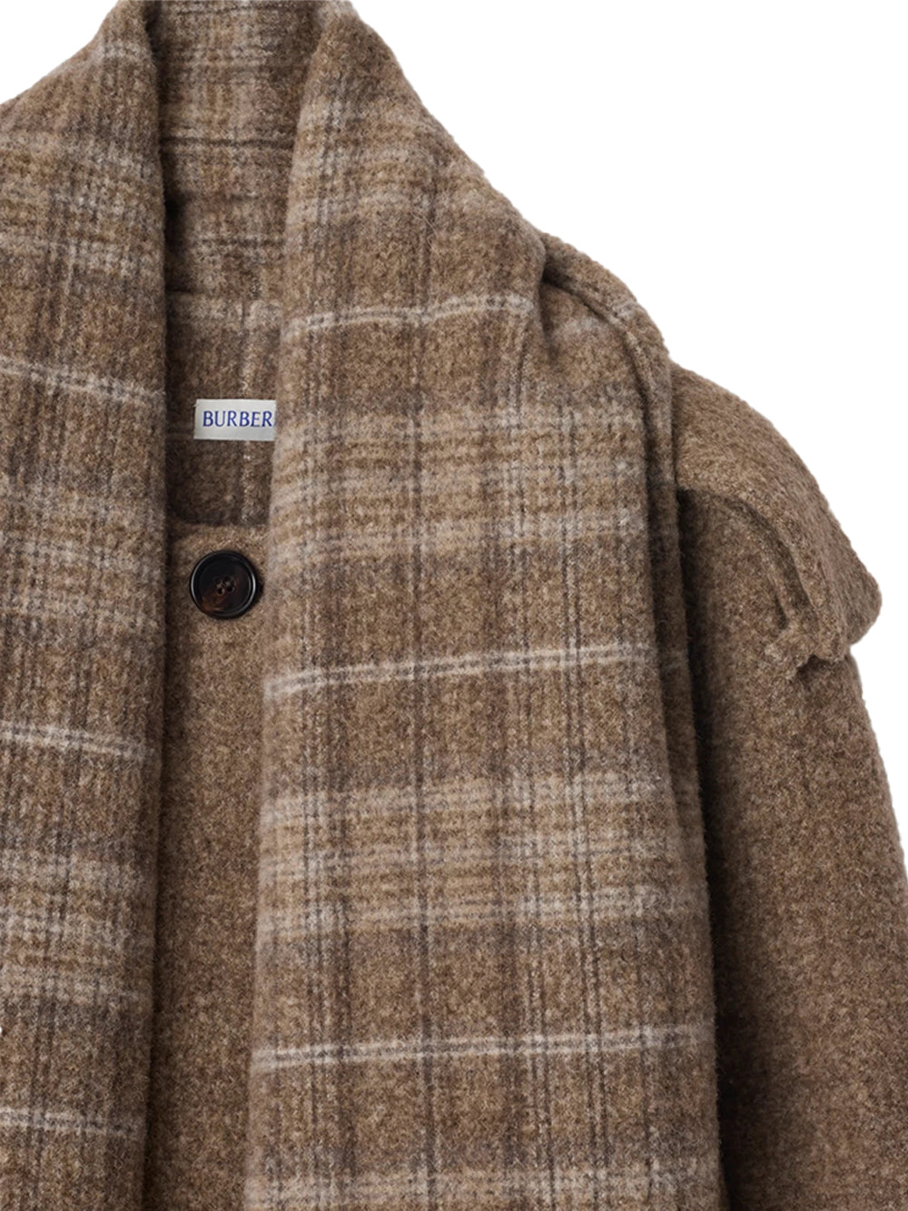 Burberry Women Detachable Scarf Wool Blend Jacket Biscuit