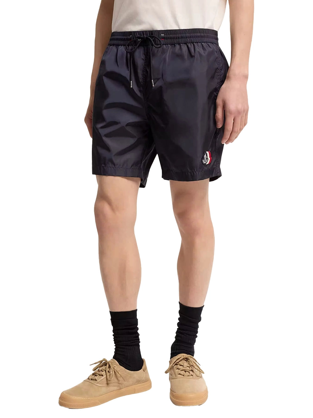 Refresh your holiday style with moncler and these classic moncler shorts. The moncler shorts mens feature a drawstring waist and moncler logo patch. The moncler shorts navy provide a mesh lining and moncler side pockets. Enjoy a rear zip pocket on the moncler shorts in a timeless moncler shorts navy hue for an effortless finish.