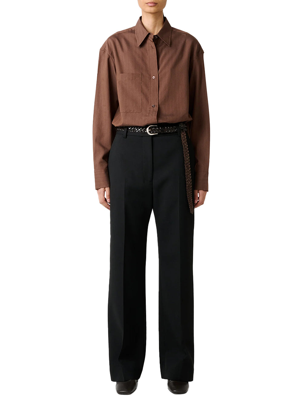 Discover refined elegance with Studio Nicholson Leto stripe shirt in rich brown. This sophisticated designer shirt features a classic pointed collar, buttoned cuffs, and practical chest patch pocket. The curved hem completes the elegant silhouette of this Studio Nicholson piece. Perfect for both professional and casual settings, this shirt Studio Nicholson design embodies minimalist sophistication. The quality craftsmanship ensures this Studio Nicholson shirt remains a versatile wardrobe essential for London's style-conscious individuals seeking timeless pieces with contemporary appeal.