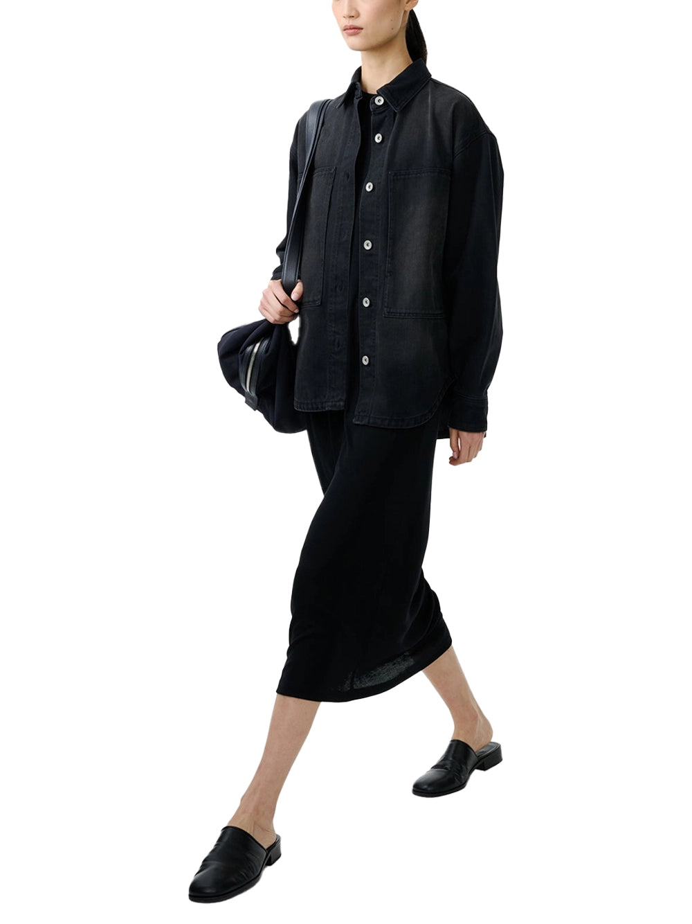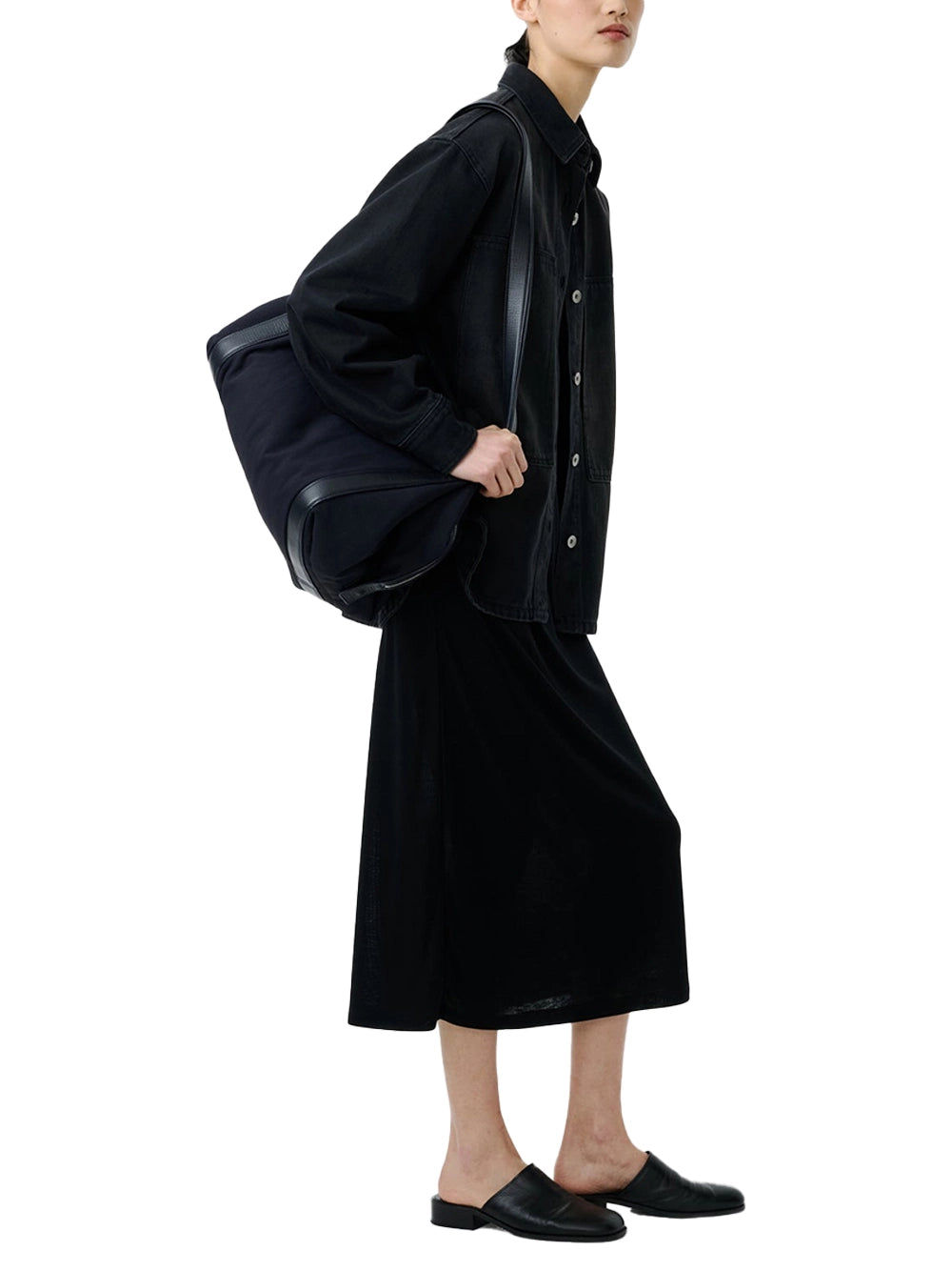 Studio Nicholson Milner Dress Black-with model Studio Nicholson Milner Dress Black-with model