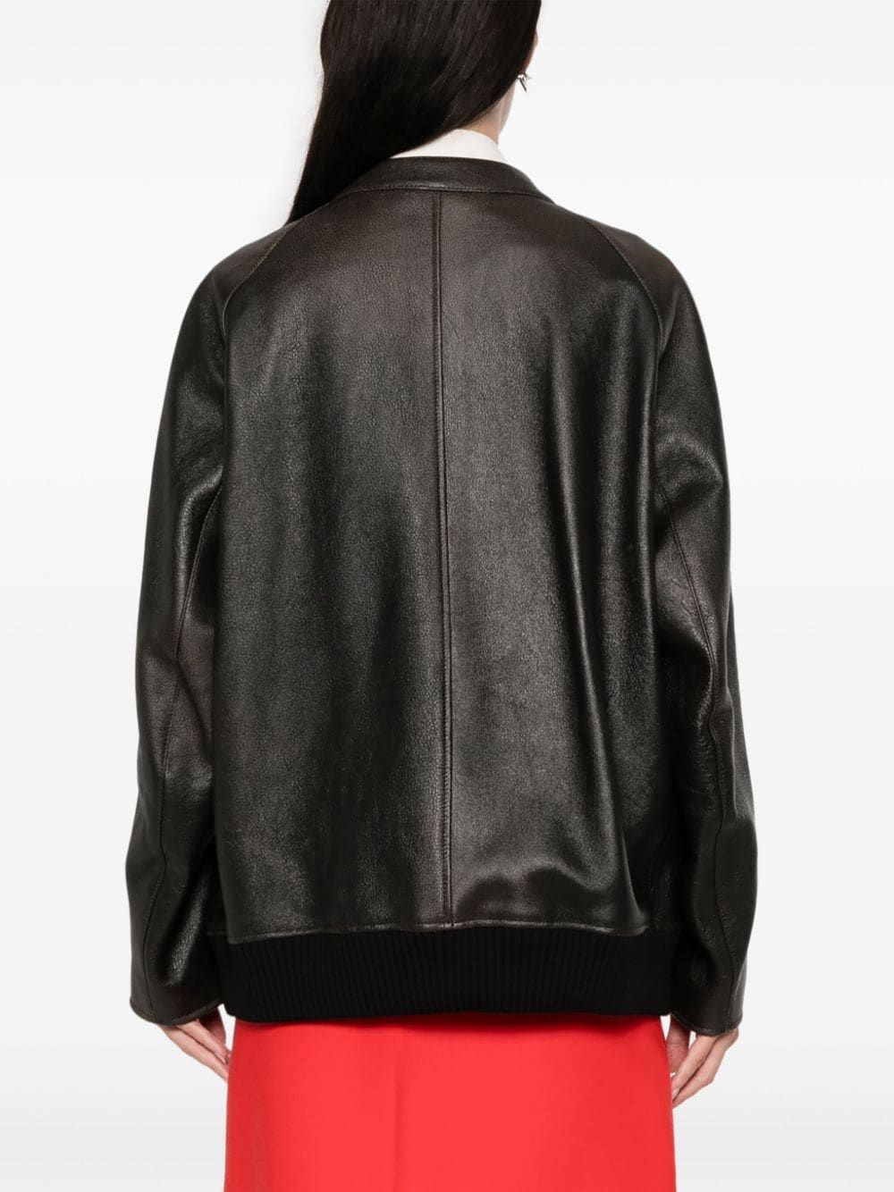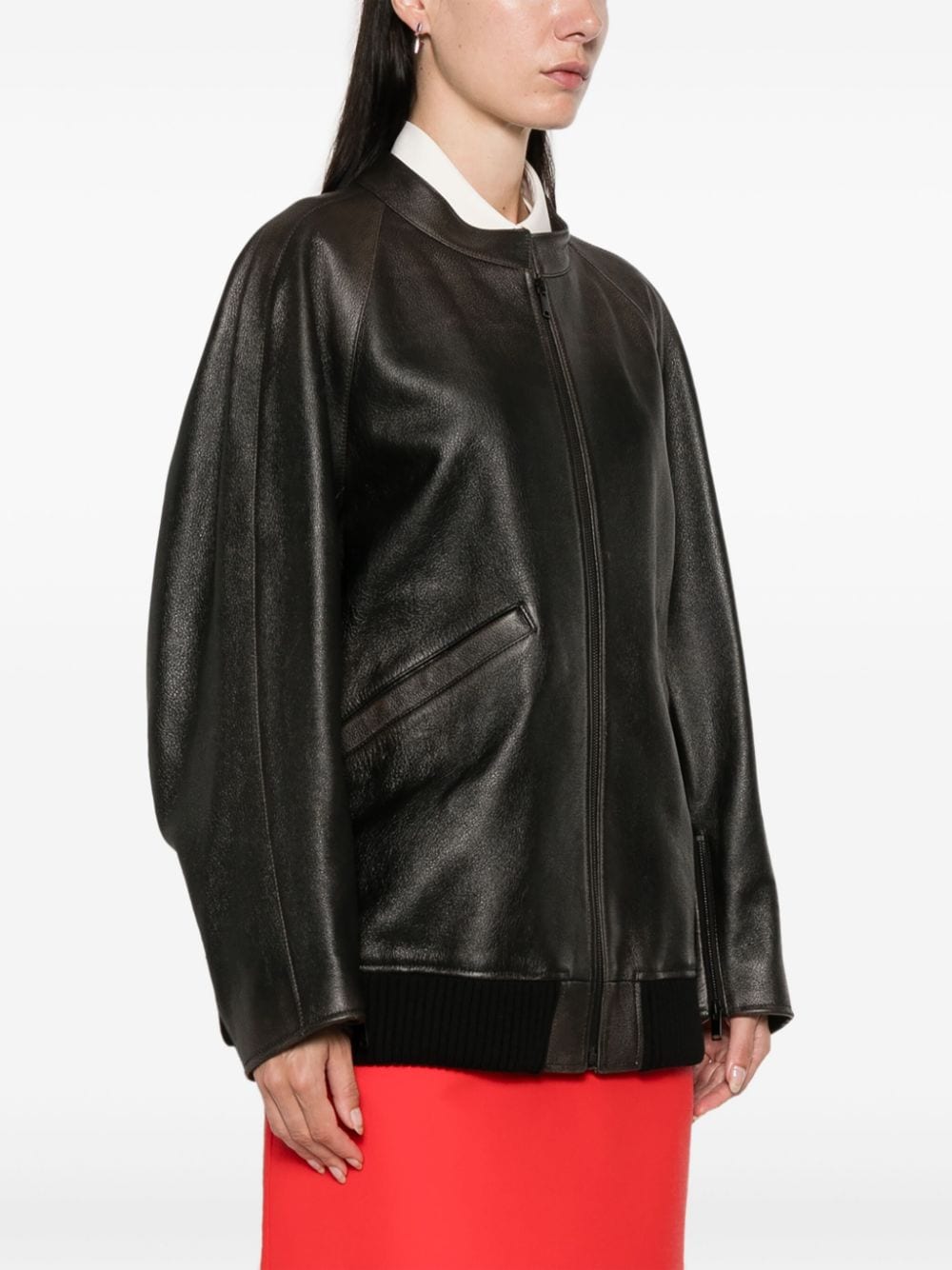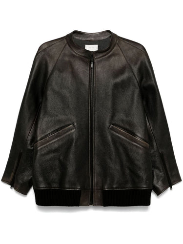 Experience luxurious comfort with The Row Kengia jacket in rich dark brown. Crafted from supple distressed leather with a relaxed silhouette, this sophisticated The Row coat features elegant ribbed trims and full silk lining for premium comfort. The artfully worn finish gives this The Row London piece immediate character and timeless appeal.