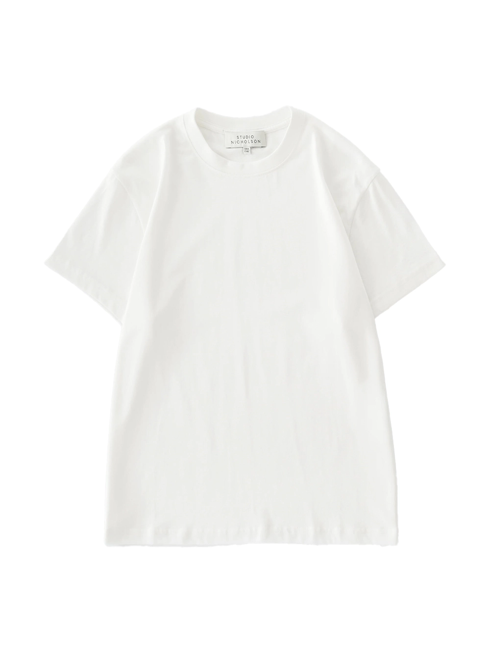 The Marine T-Shirt in Off-White — a refined essential crafted from soft mid-weight cotton jersey. Features a classic crew neck, straight hem and subtle screen-printed Studio Nicholson logo at the nape. Clean, minimal and perfect for elevated everyday wear.