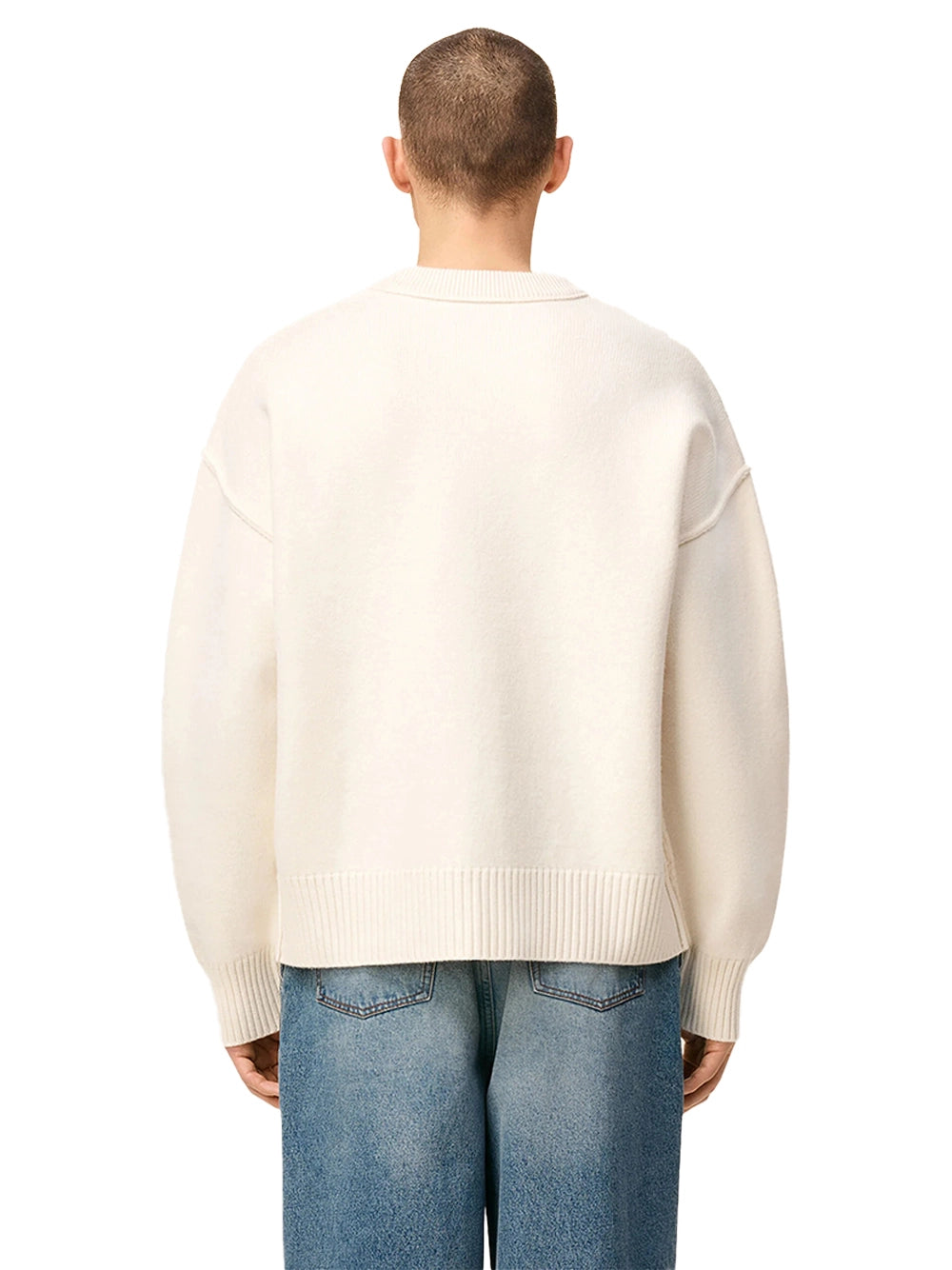 AMI Wool Crewneck Sweater White/Black-back side AMI Wool Crewneck Sweater White/Black-back side