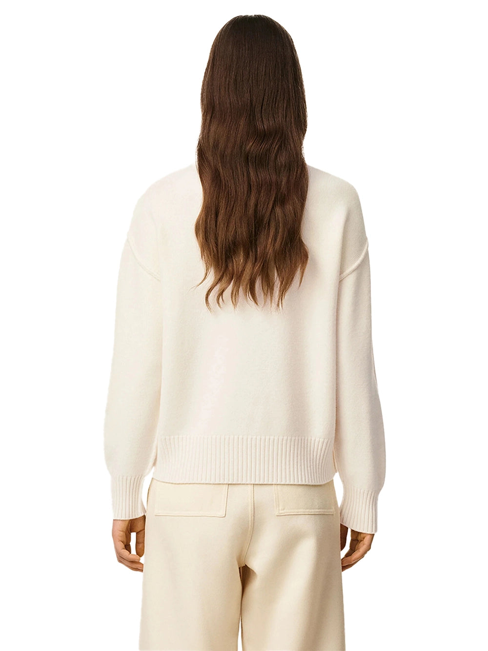 AMI Wool Crewneck Sweater White/Black-back side with women model