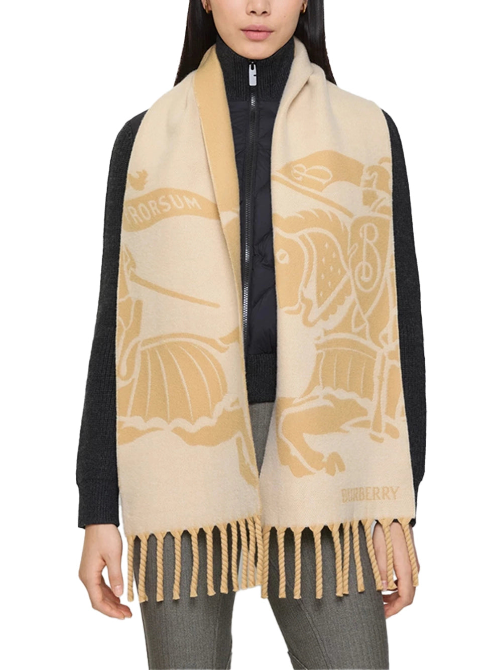 Burberry Reversible EKD Wool Scarf Sand