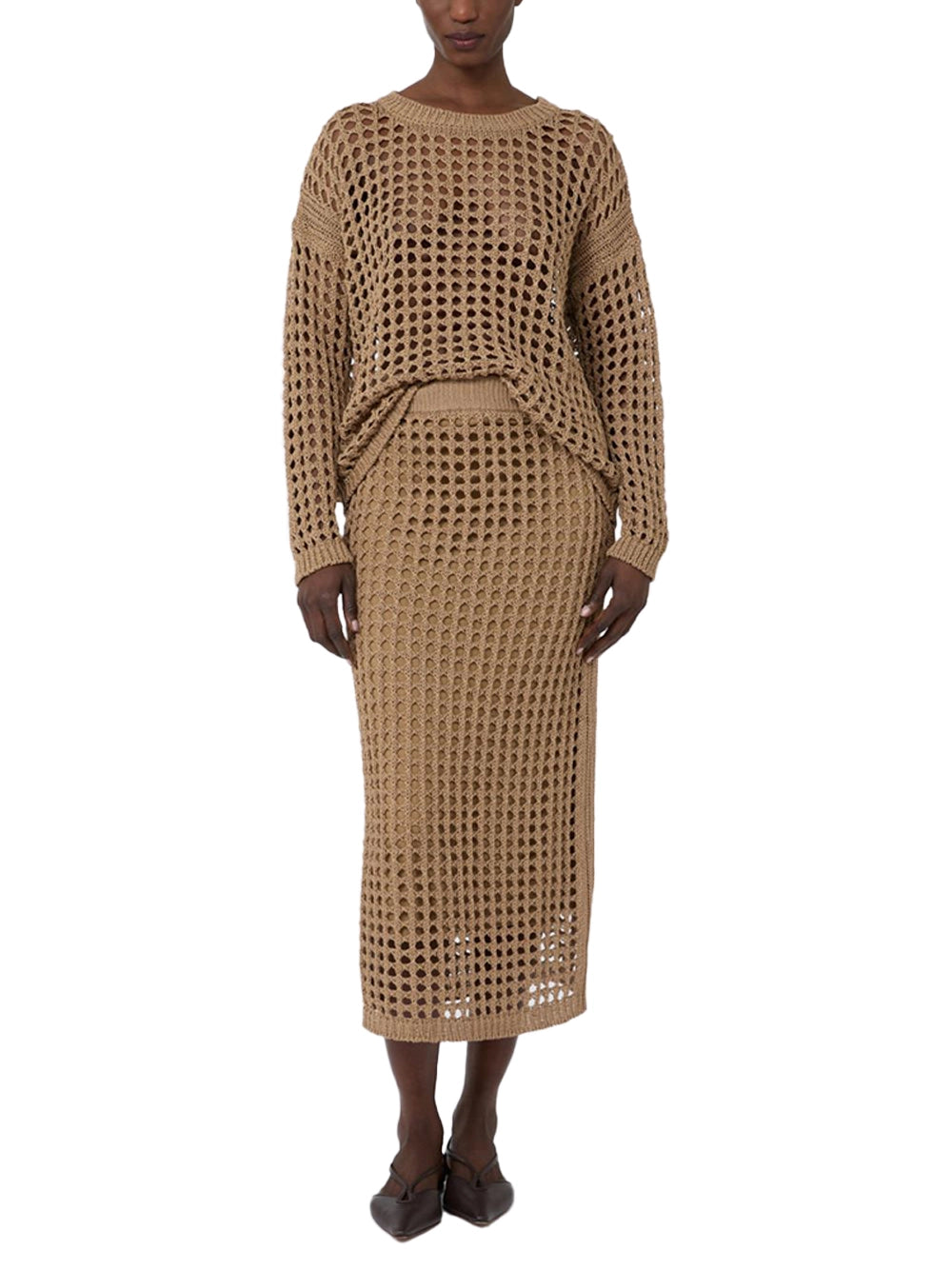 Max Mara Mxpfebe Mesh Top Desert-with model Max Mara Mxpfebe Mesh Top Desert-with model