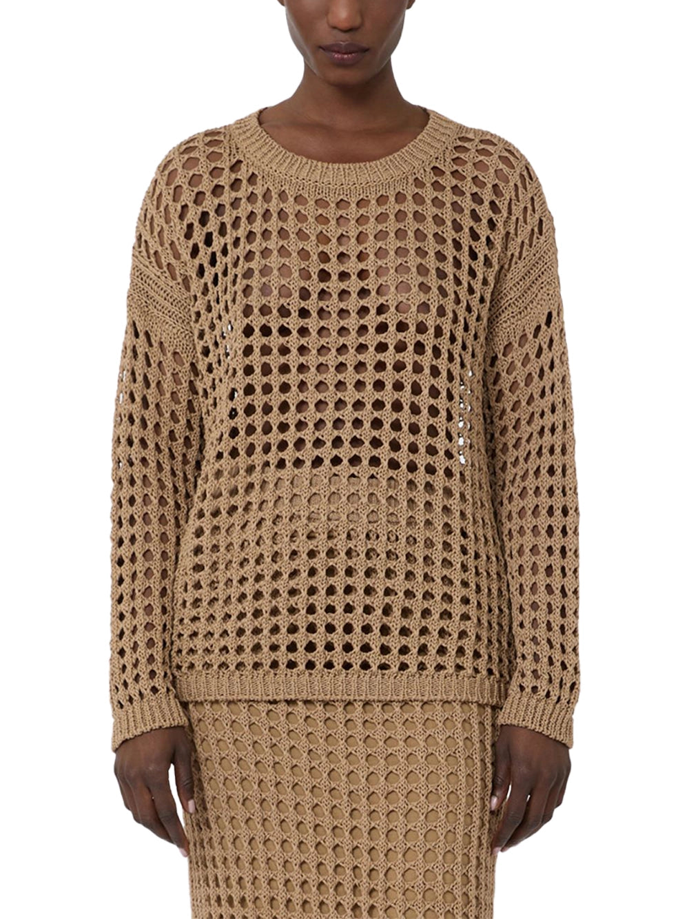 Max Mara Mxpfebe Mesh Top Desert-front side Max Mara Mxpfebe Mesh Top Desert-front side