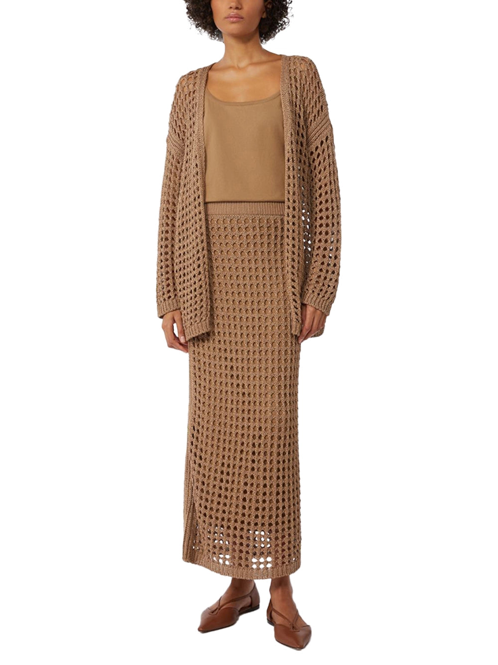 Max Mara Mesh Cotton Cardigan Desert-with model Max Mara Mesh Cotton Cardigan Desert-with model