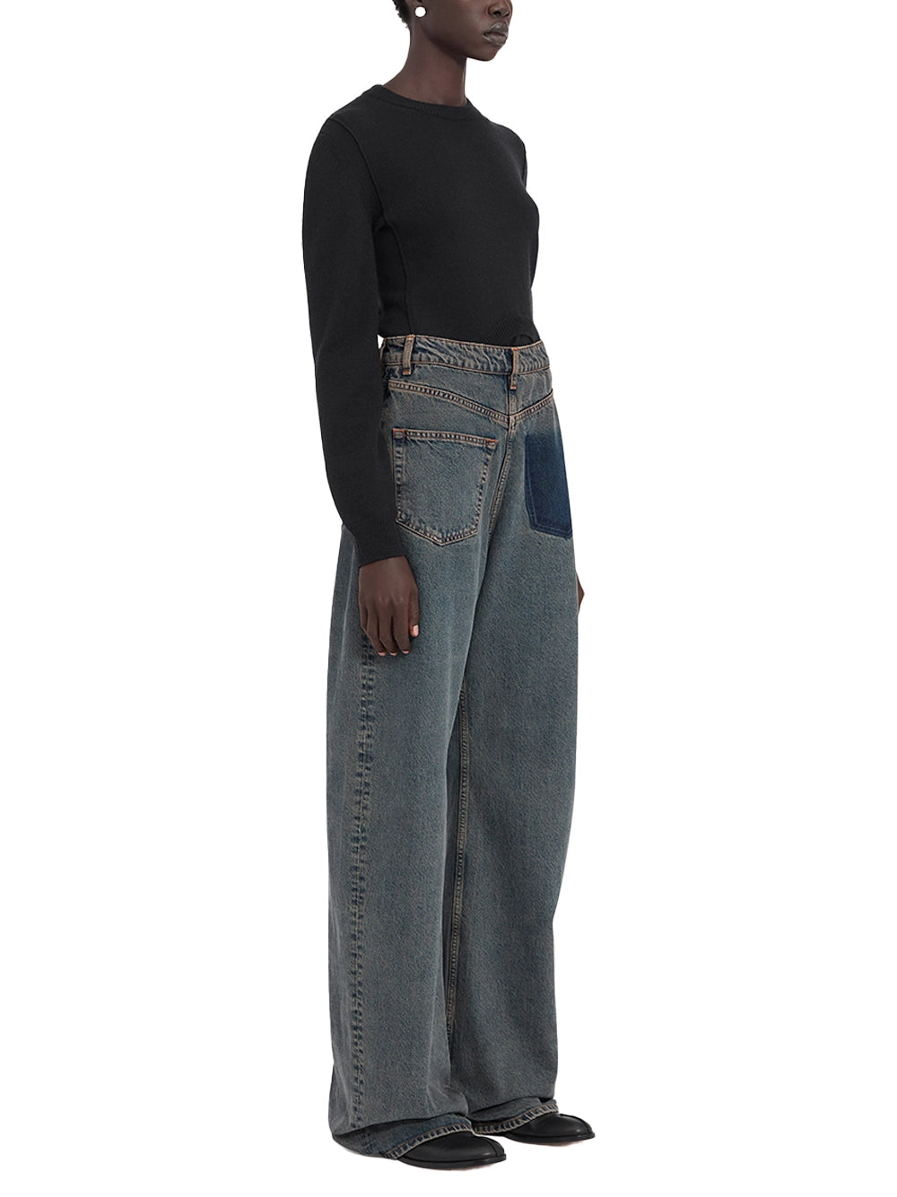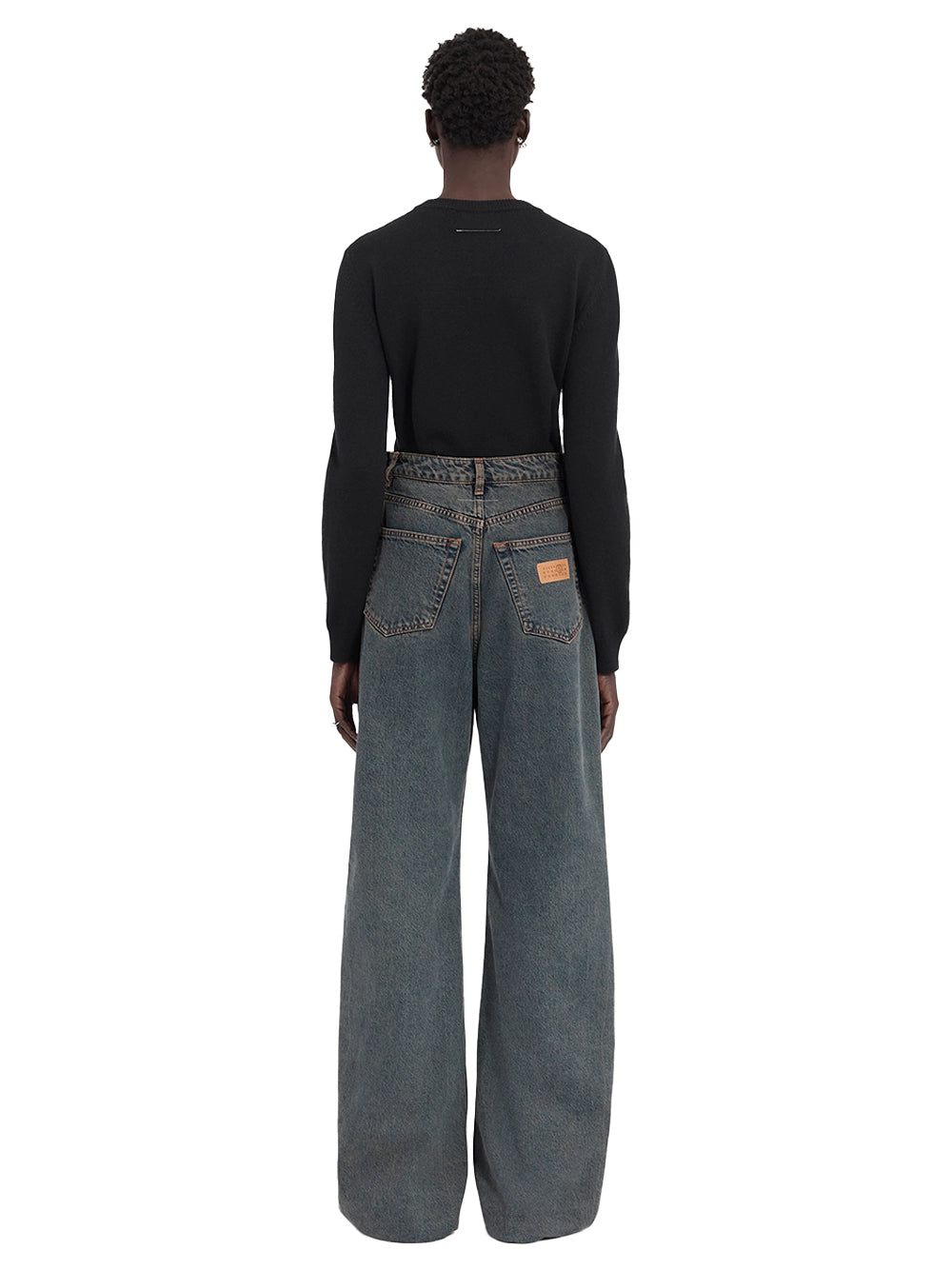 Challenge convention with these mm6 maison margiela jeans. These wide-leg mm6 maison margiela denim trousers feature a back-to-back reversed structure and pocket illusion details. Every mm6 maison margiela piece is defined by the numeric signature and iconic white stitch. Expertly crafted in Italy, this mm6 maison margiela garment offers a bold, deconstructed urban edge.