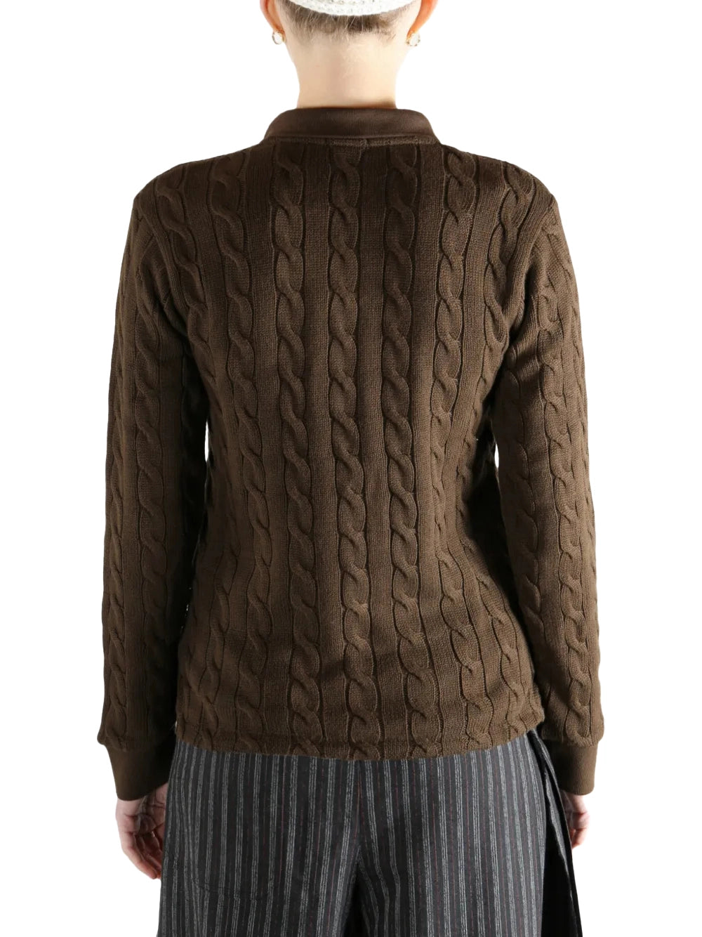 Polo Ralph Lauren Cable-Knit Buttoned Polo Top Dark Brown