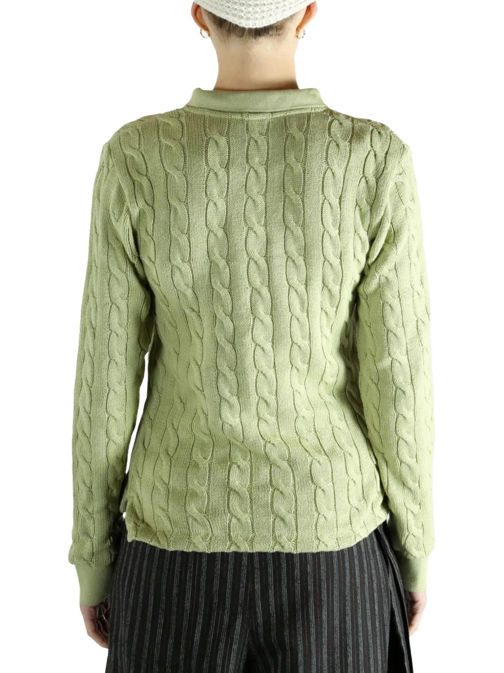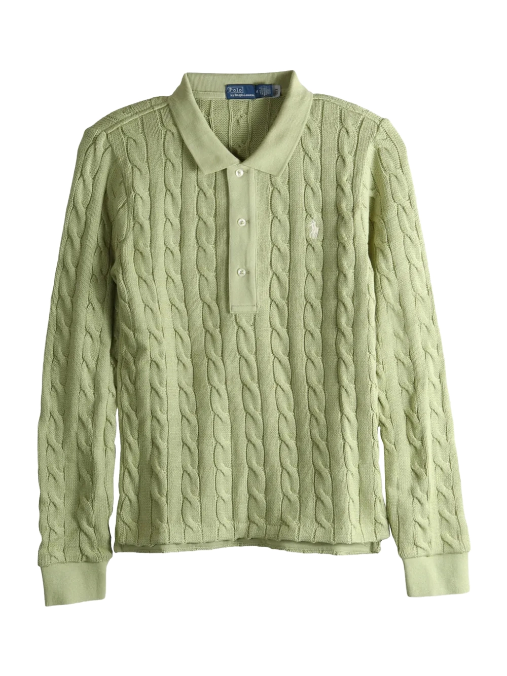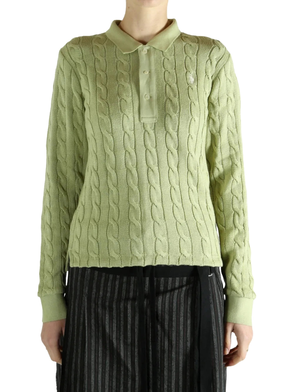Polo Ralph Lauren Cable-Knit Buttoned Polo Top Green