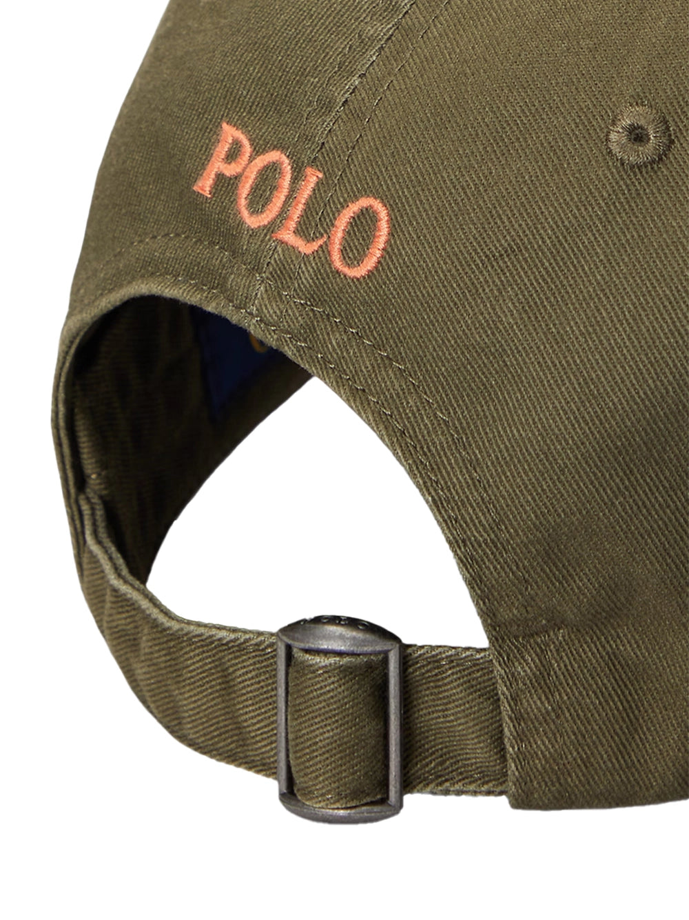 - “Polo” embroidery and a buckled strap at the back