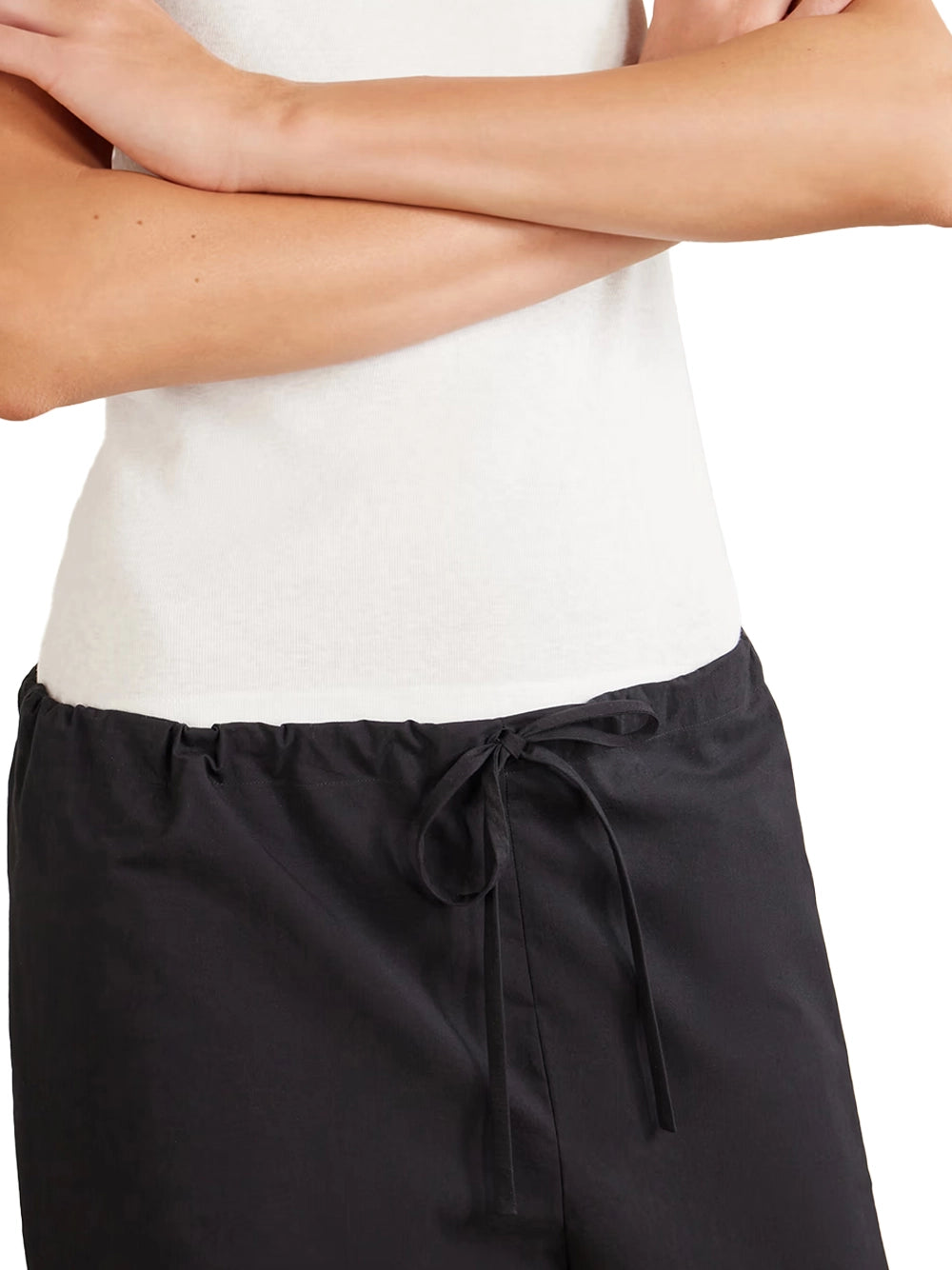 Embrace fluid movement with the row. These low-rise the row trousers black feature a wide-leg, cropped cut in lightweight, non-stretch fabric. The adjustable drawstring ensures these the row pants provide a flexible, personalised fit. Every pair of the row trousers delivers a masterclass in modern, understated luxury.