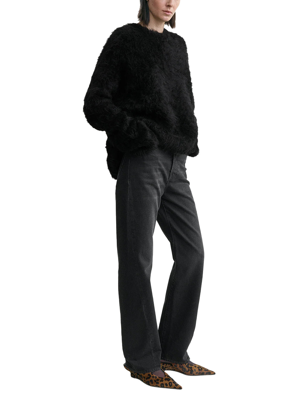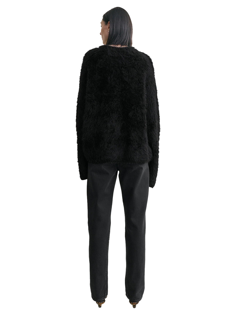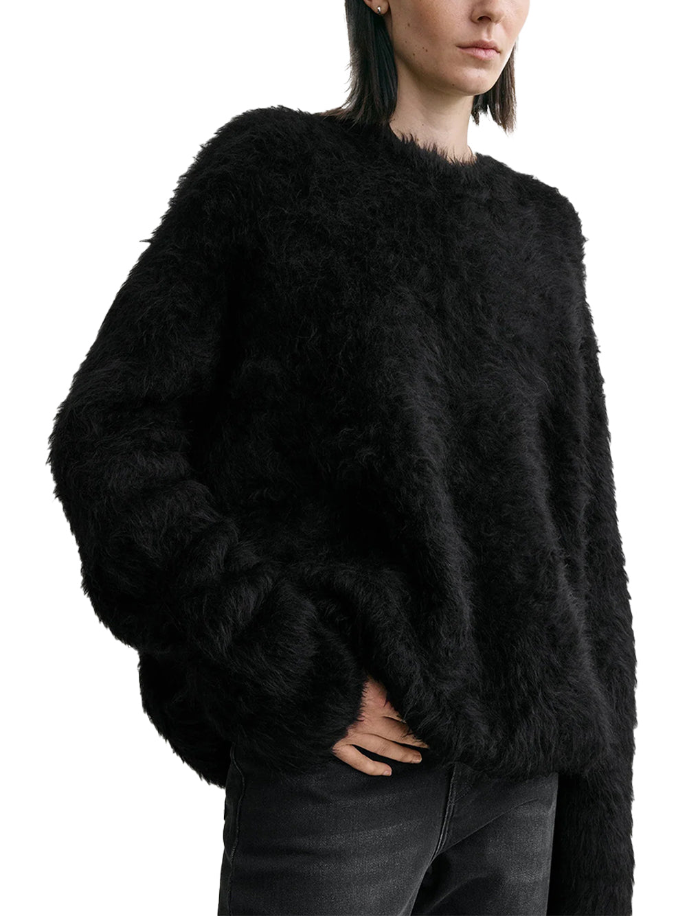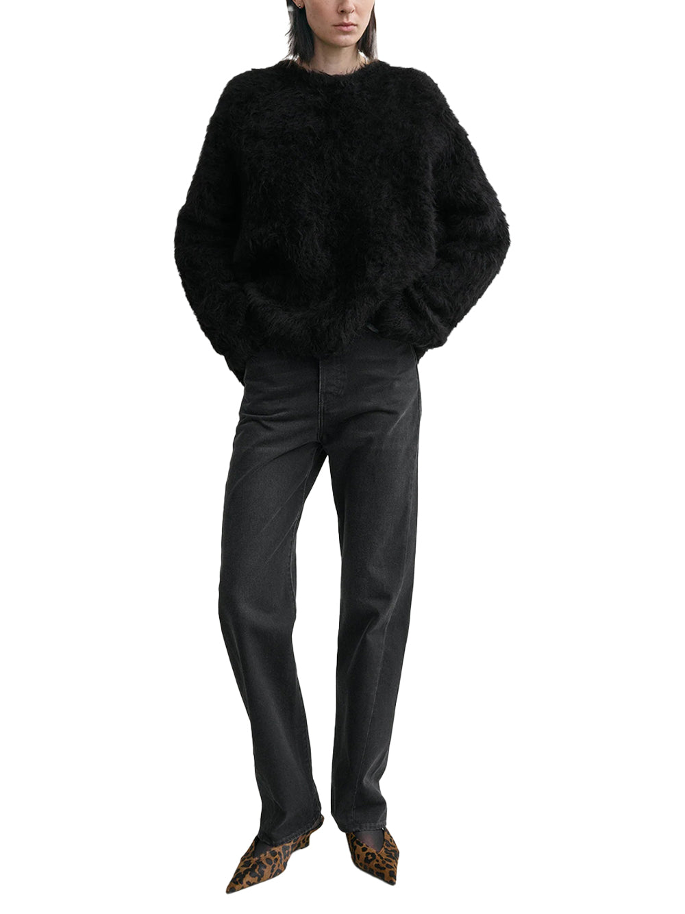 Experience luxurious comfort with Toteme boxy alpaca jumper in classic black. Crafted from premium alpaca blend yarn, this relaxed Toteme jumper features a straight-cut silhouette with extended sleeves for effortless elegance. The generous boxy fit creates a modern profile perfect for layering or standalone wear.