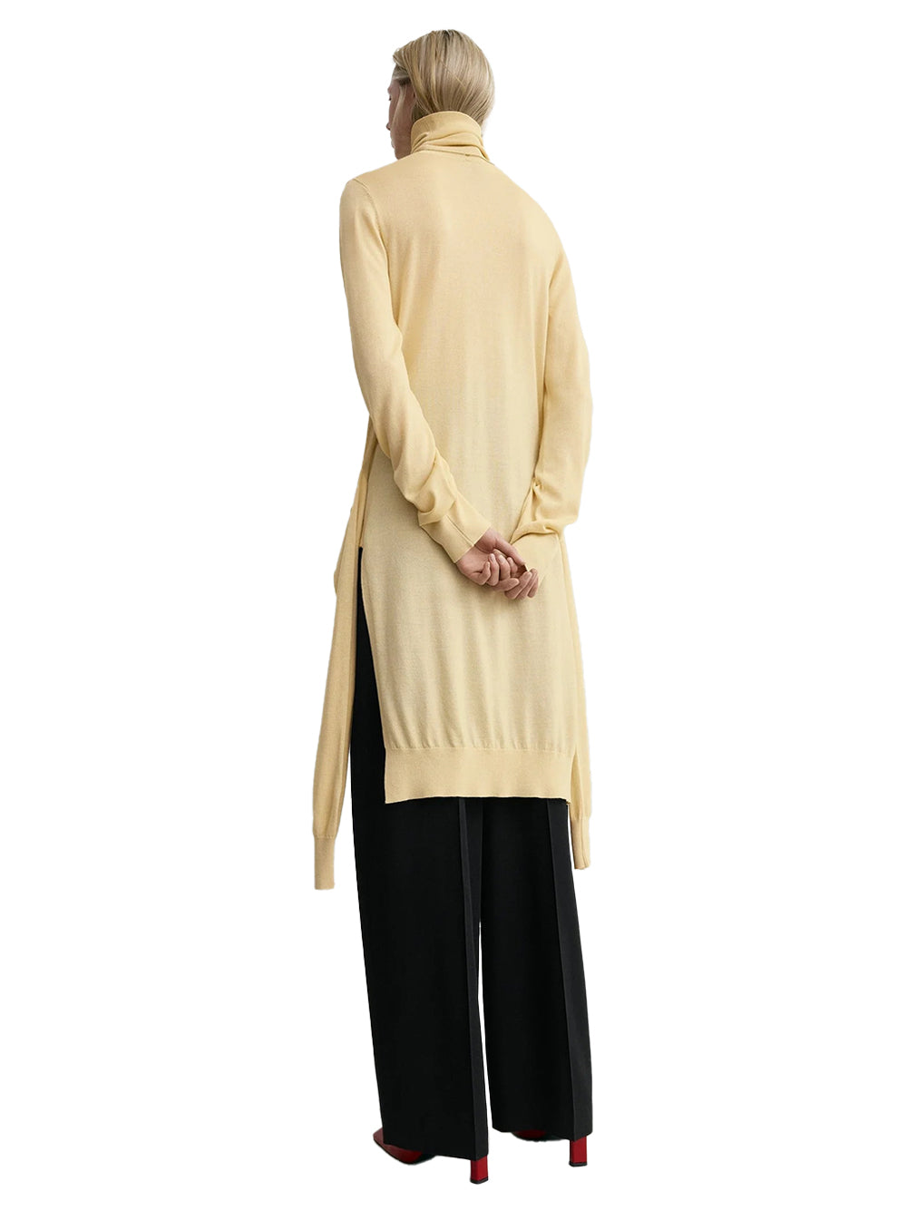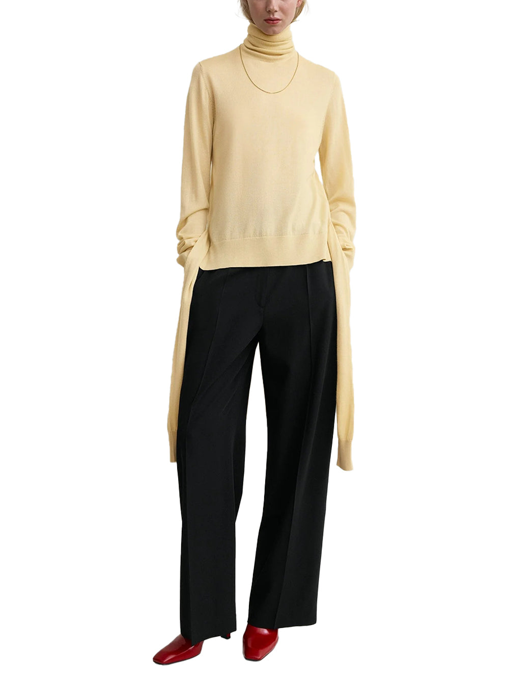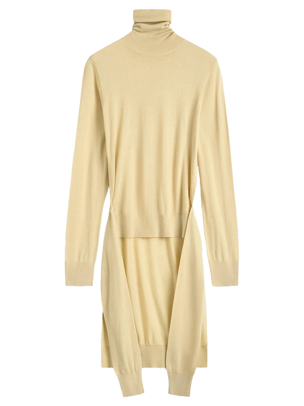 Discover architectural elegance with Toteme double-sleeve turtleneck in sophisticated champagne. This innovative Toteme jumper combines premium wool-silk blend with a fitted silhouette and high neck for refined comfort. The signature additional sleeve, elegantly draped at the waist, creates a sculptural profile perfect for creative styling.