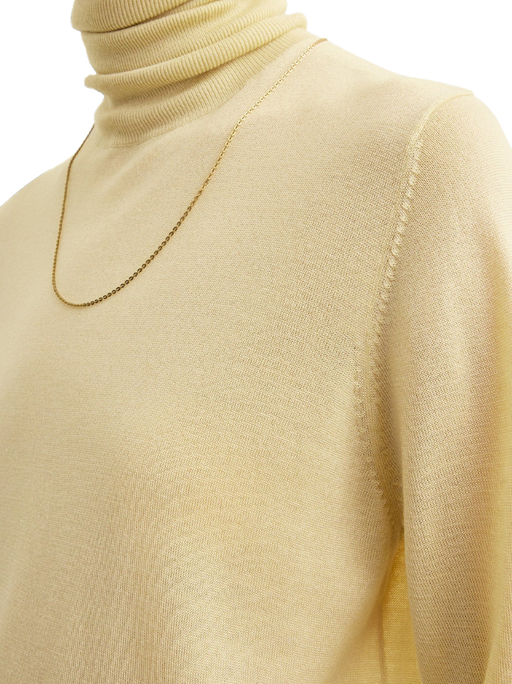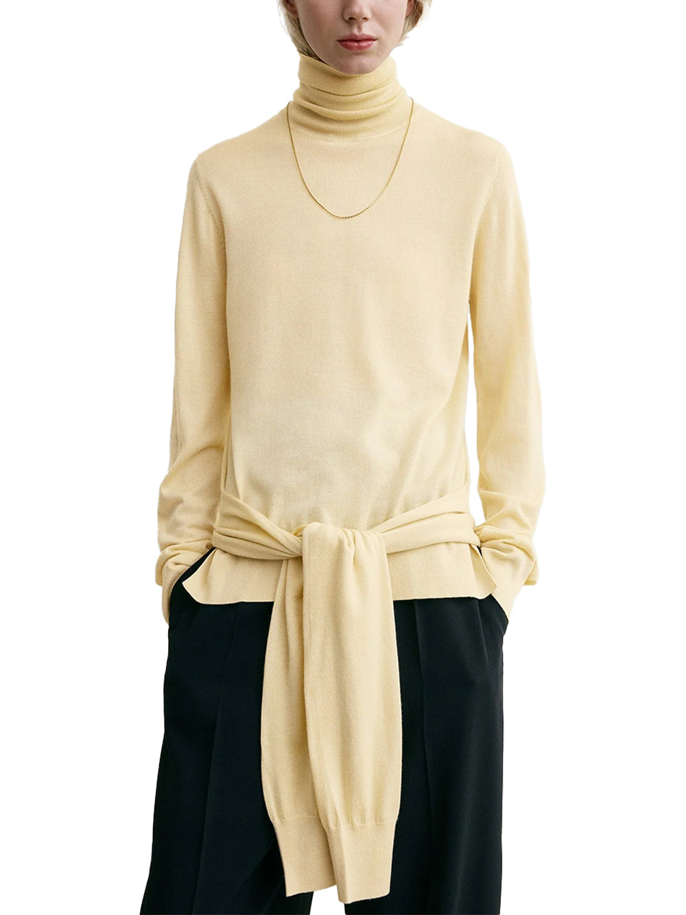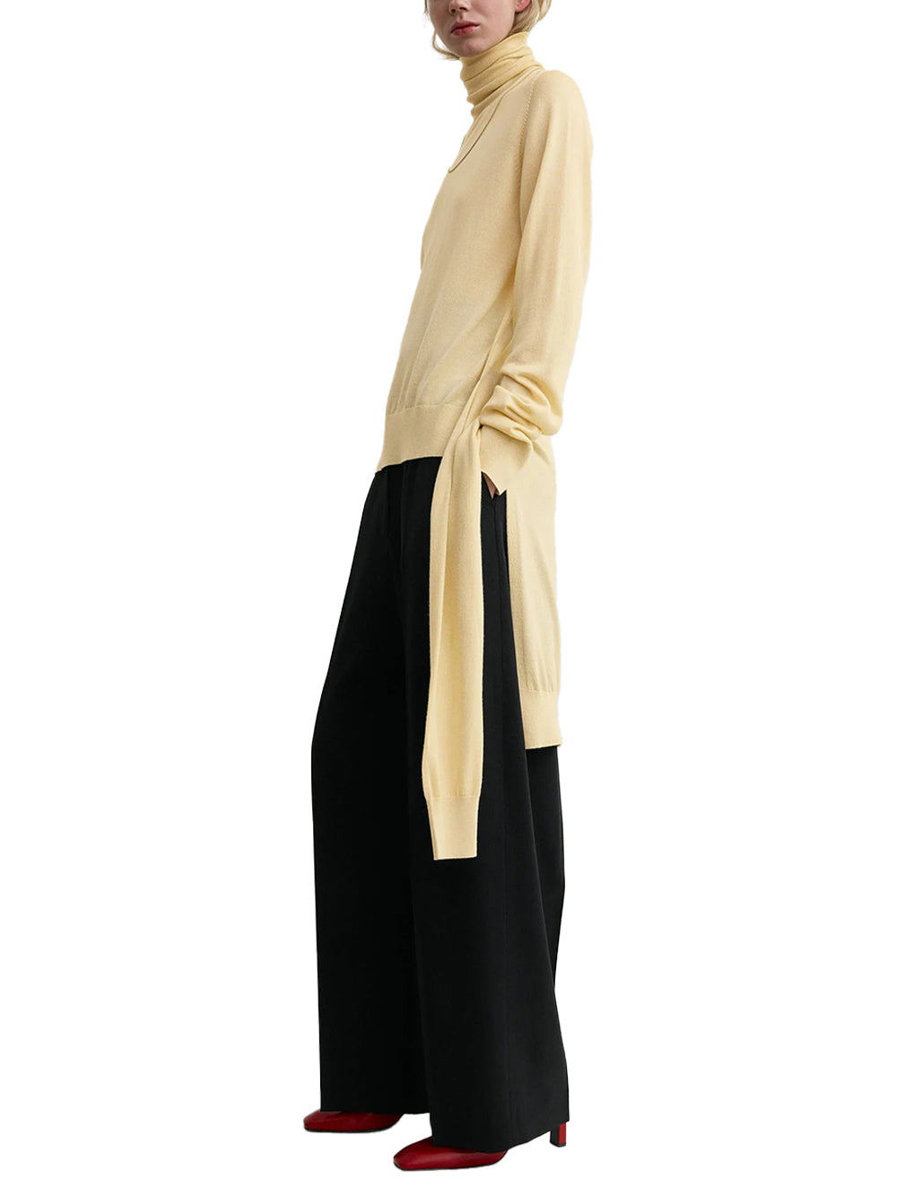 Discover architectural elegance with Toteme double-sleeve turtleneck in sophisticated champagne. This innovative Toteme jumper combines premium wool-silk blend with a fitted silhouette and high neck for refined comfort. The signature additional sleeve, elegantly draped at the waist, creates a sculptural profile perfect for creative styling.