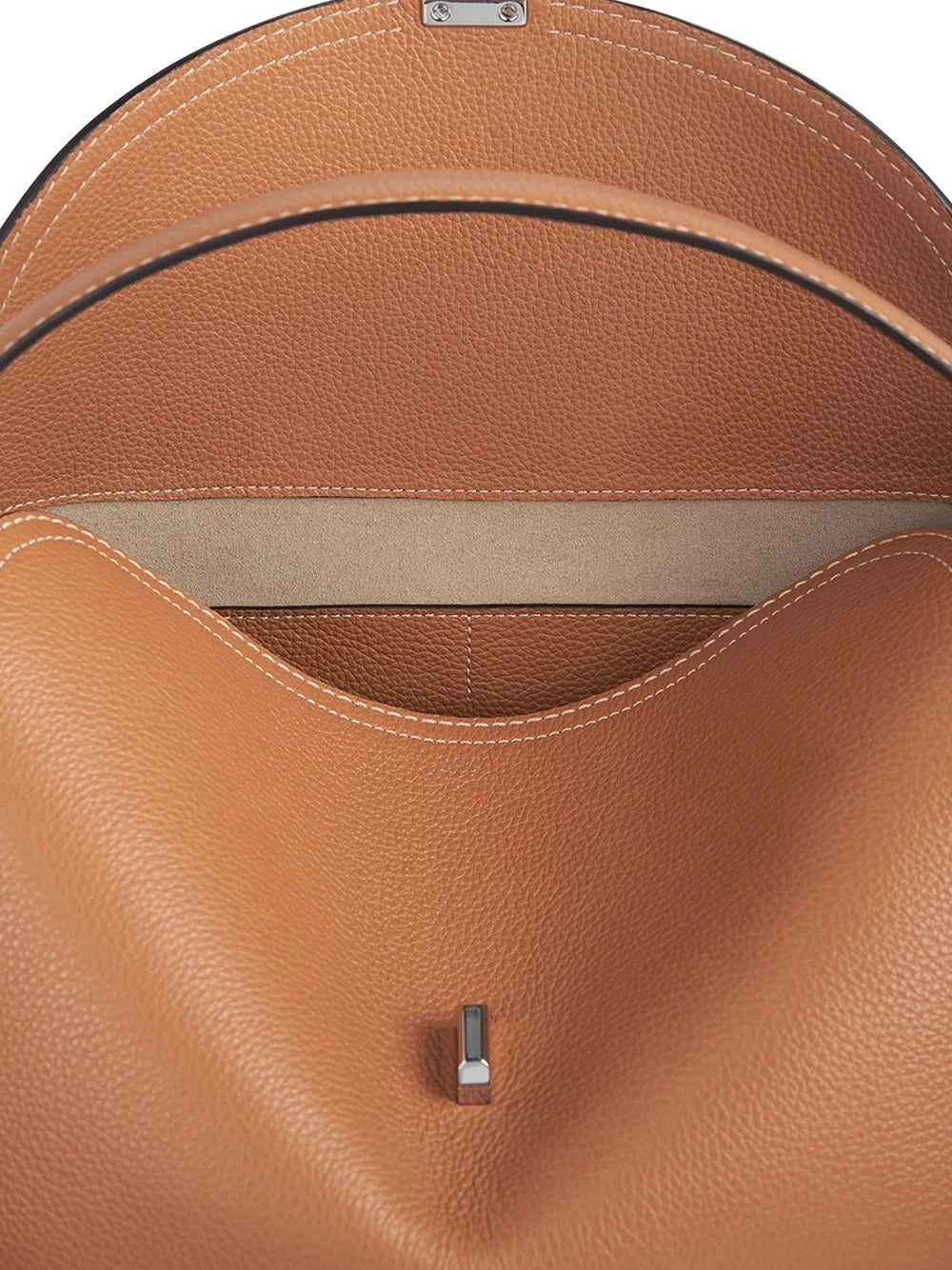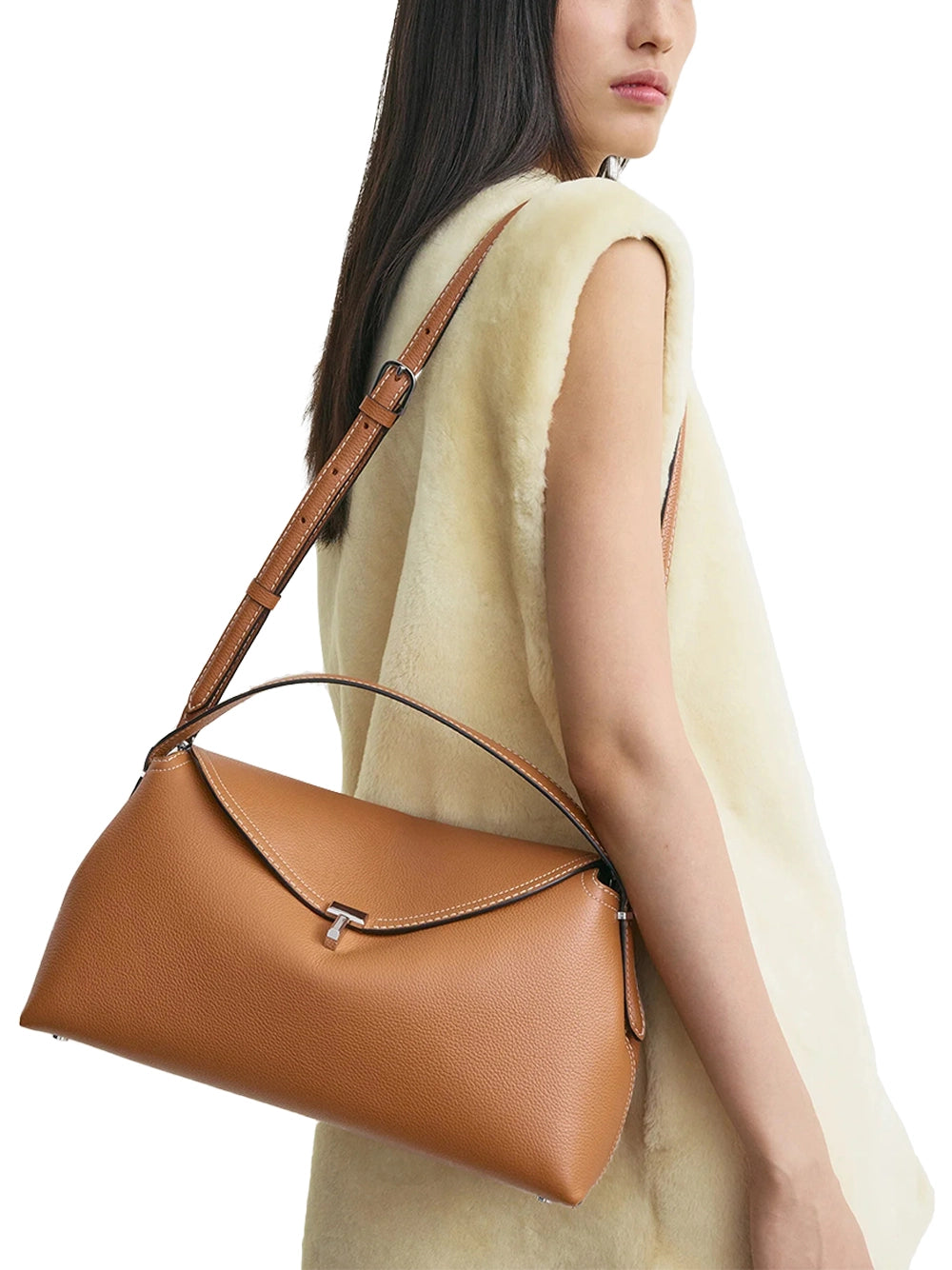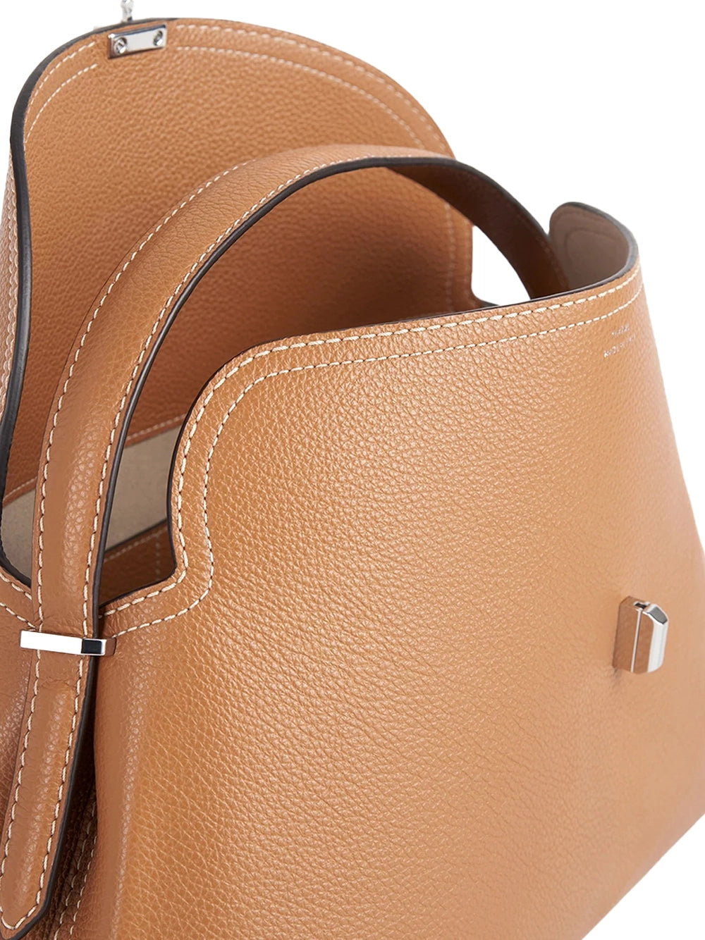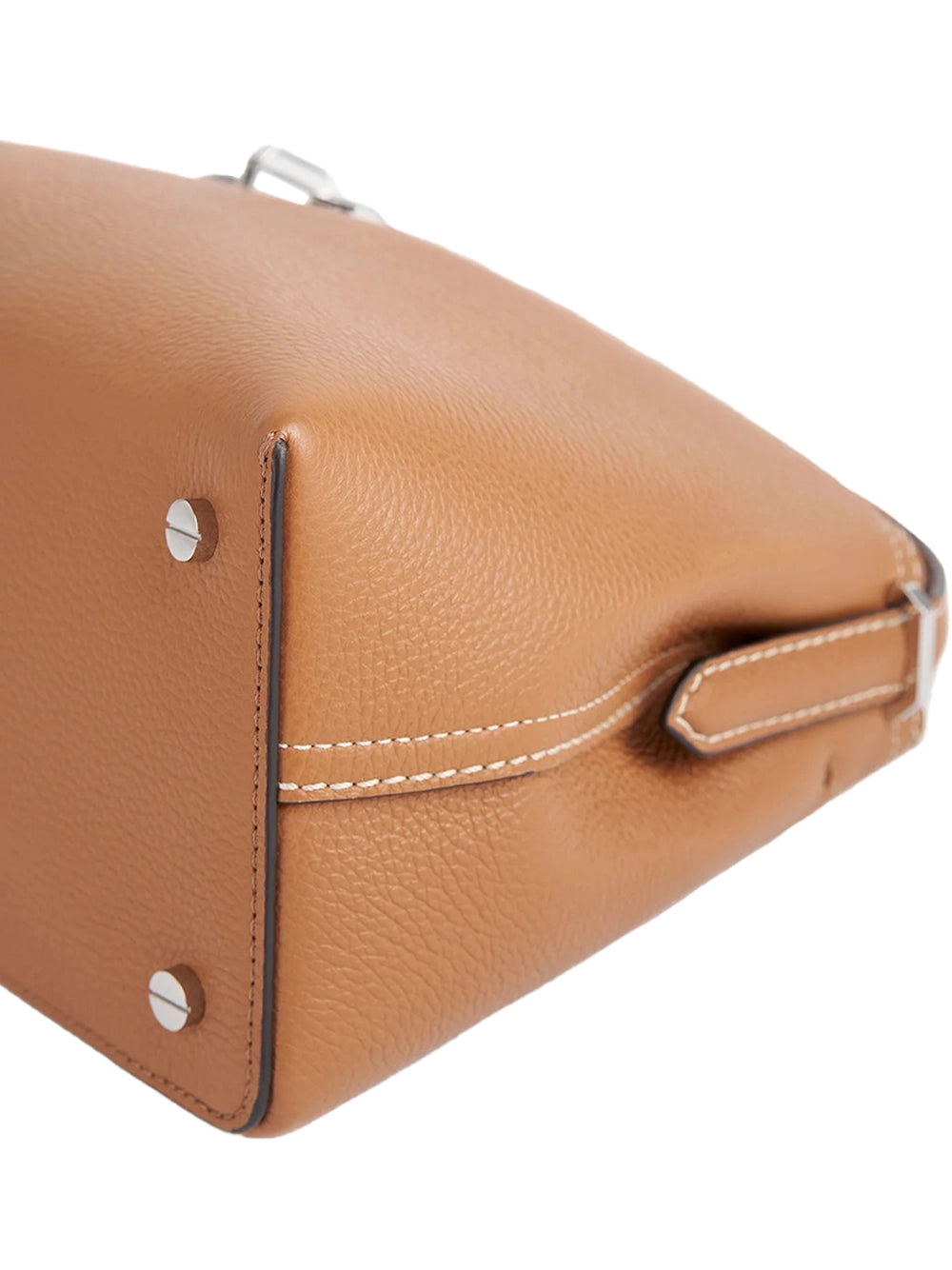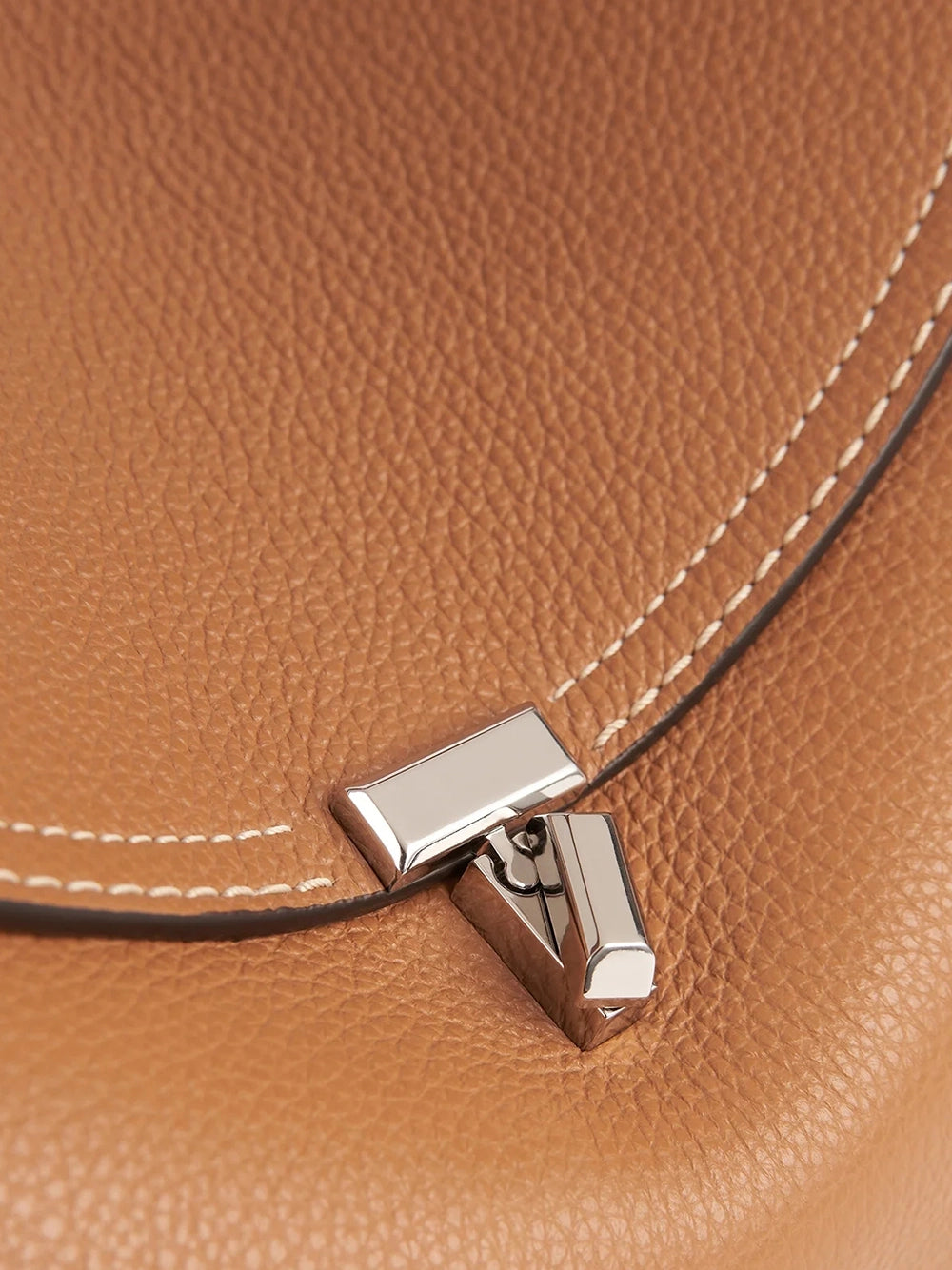 Toteme T-Lock Grained Leather Top Handle Bag Tan