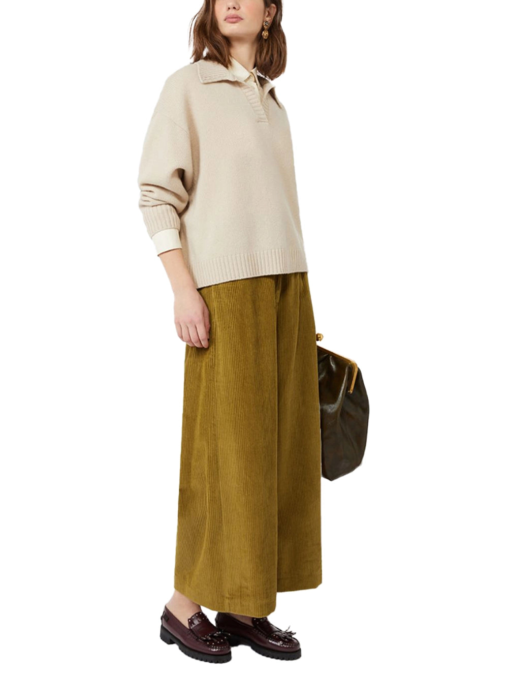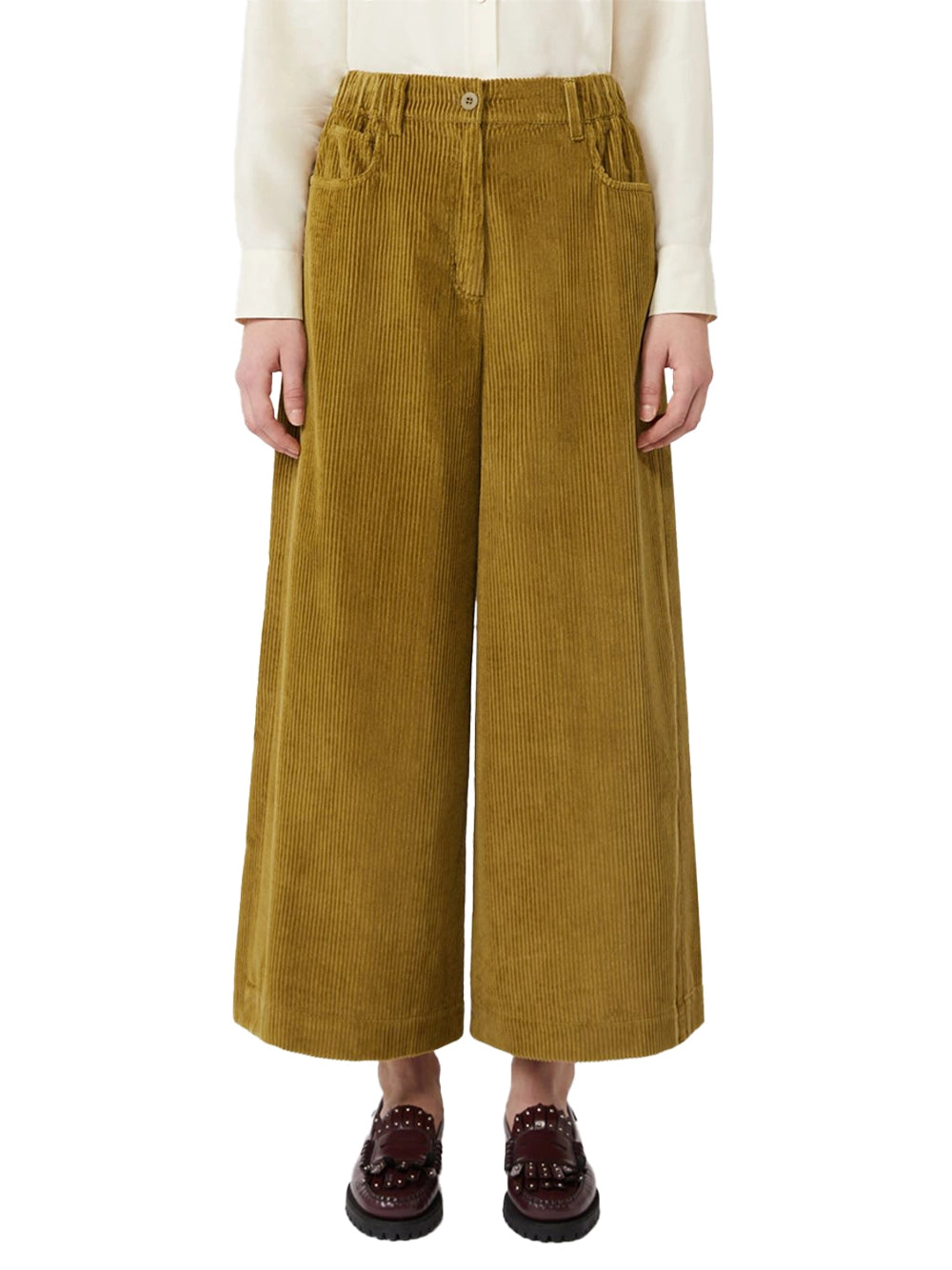 Weekend Maxmara Cropped Cotton Velvet Trousers Olive
