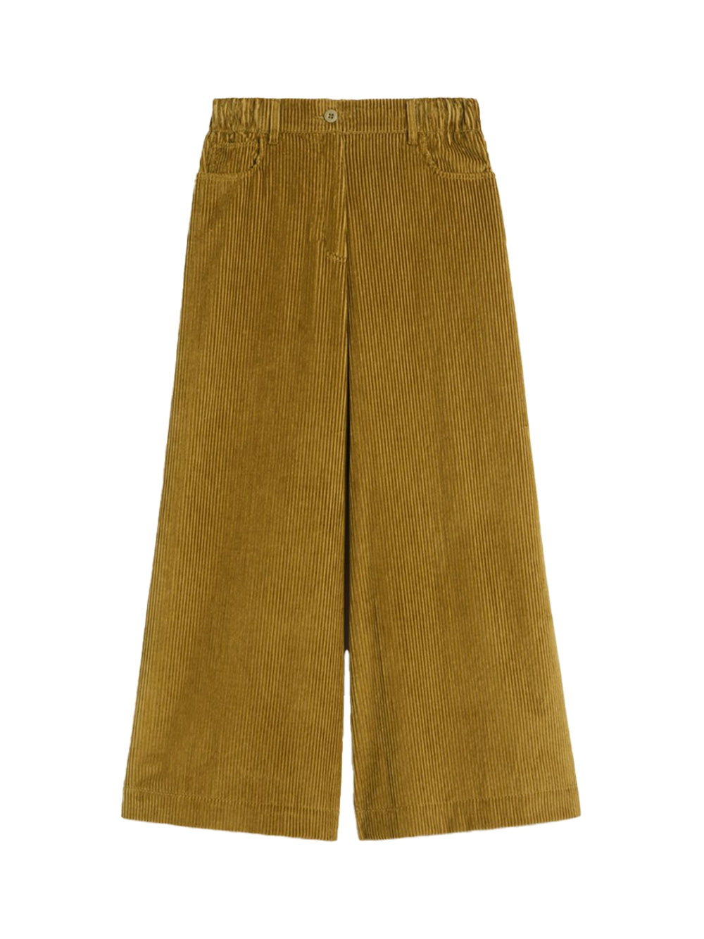 Discover effortless style with these Weekend Max Mara trousers, expertly tailored from soft cotton velvet for luxurious comfort. These wide-leg Weekend Max Mara trousers feature a discreet side zip and enamel button fastening, complemented by a back buttoned welt pocket for a sleek look. The elasticated back waist and functional belt loops ensure a customizable, comfortable fit throughout the day. Embrace the sophisticated elegance that defines the Max Mara weekend collection with these versatile olive trousers.